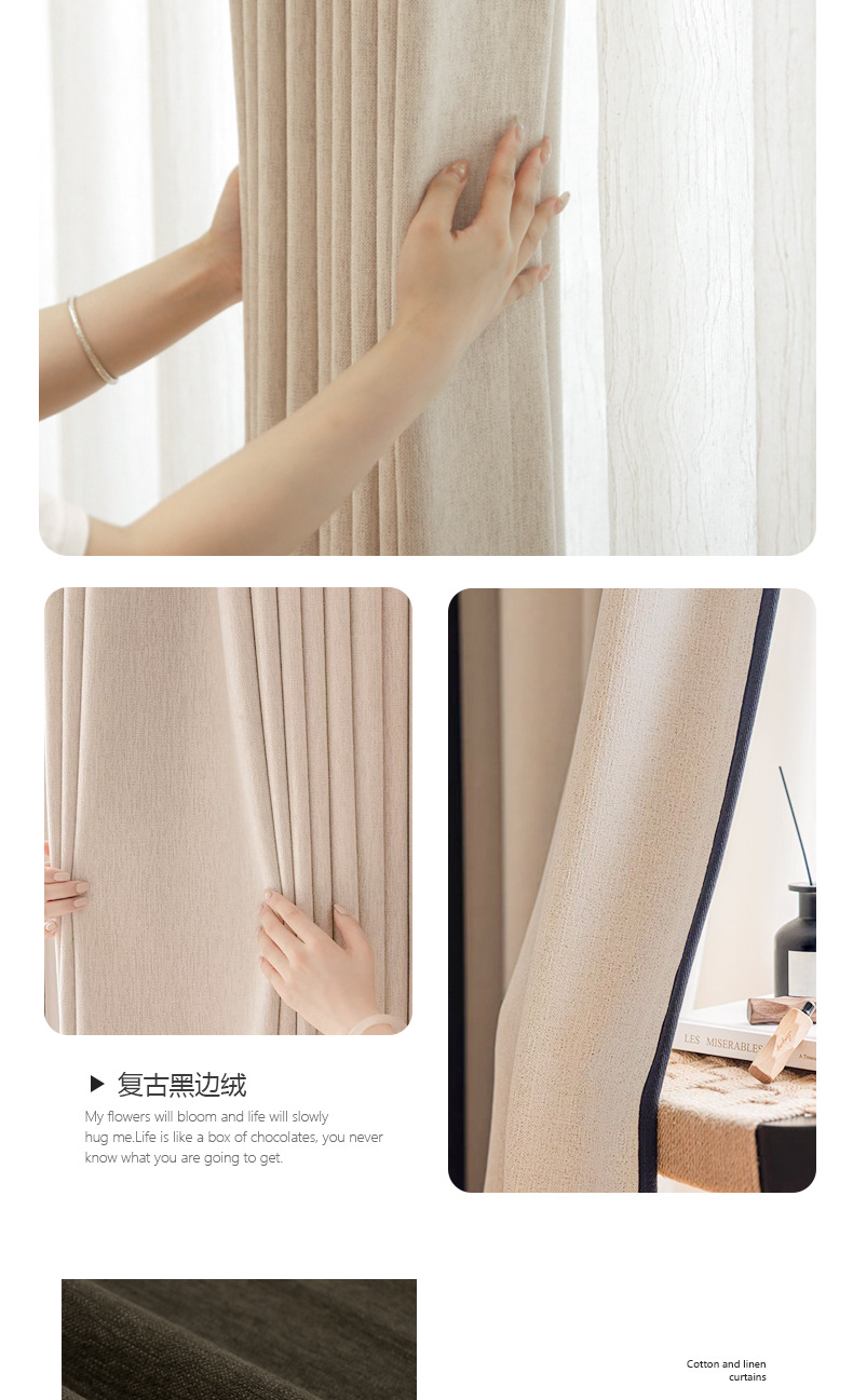 중세 스타일 셔닐 코튼과 린넨 커튼 2024 새로운 가벼운 프랑스 복고풍 패브릭 커튼 거실 침실 블랙 아웃 커튼