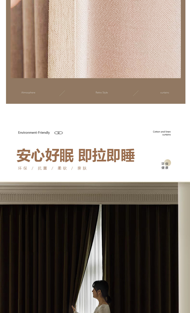 중세 스타일 셔닐 코튼과 린넨 커튼 2024 새로운 가벼운 프랑스 복고풍 패브릭 커튼 거실 침실 블랙 아웃 커튼스토어 가기