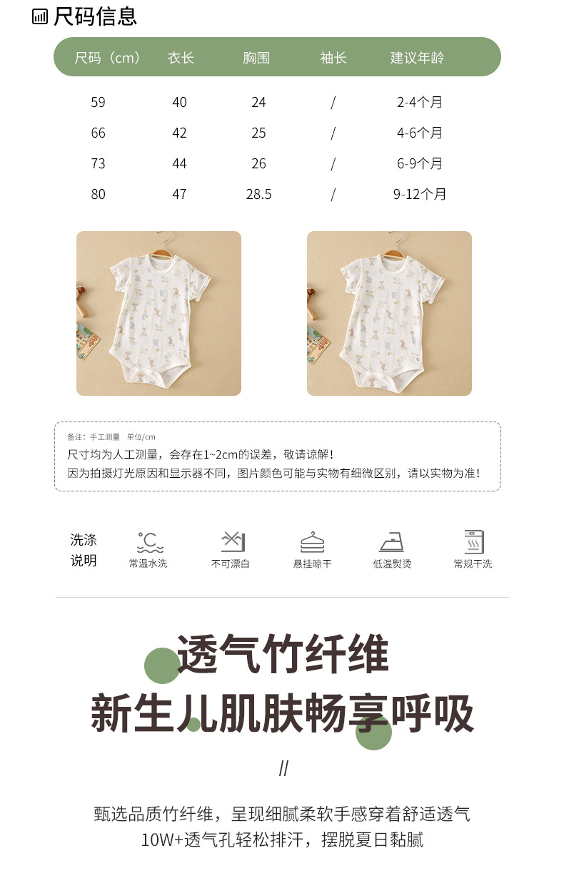 宝宝衣服短袖包屁衣新生儿夏季竹纤维短爬透气舒适爬服婴儿居家