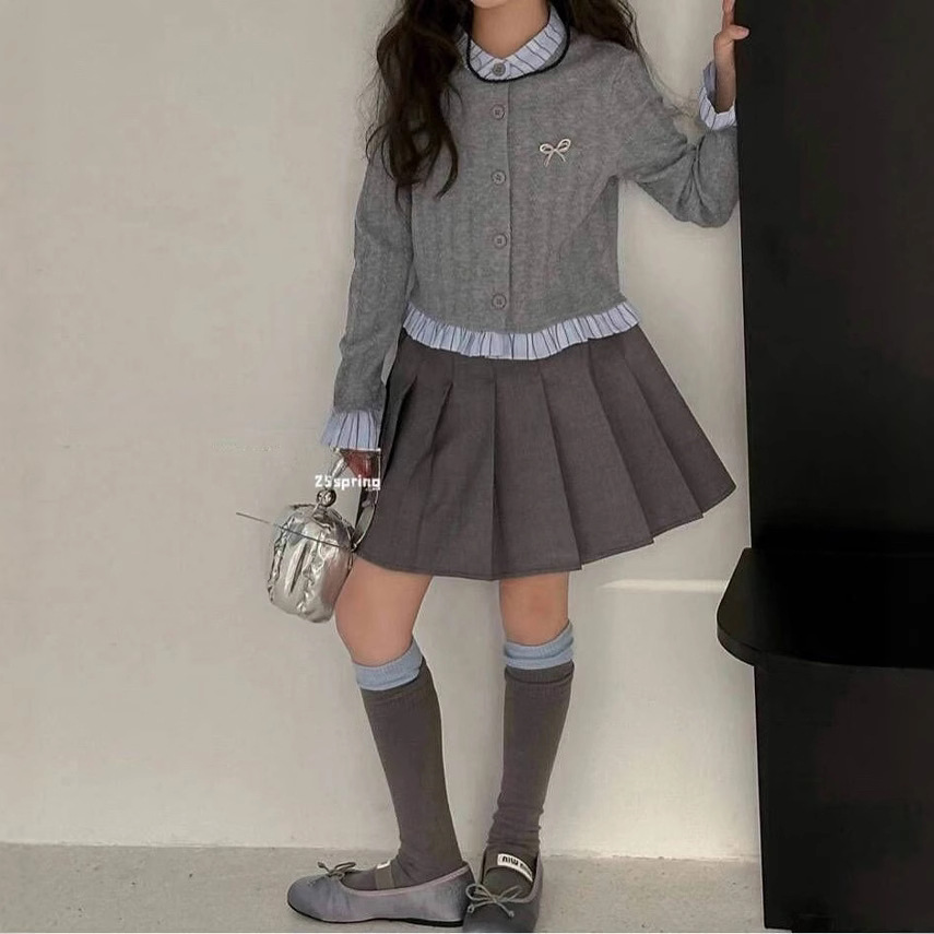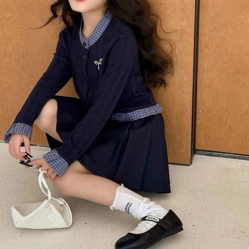 Cuhk 어린이 가짜 투피스 셔츠 스웨터 주름 치마 투피스 세트 2025 봄 새로운 어린이 외국식 세트스토어 가기