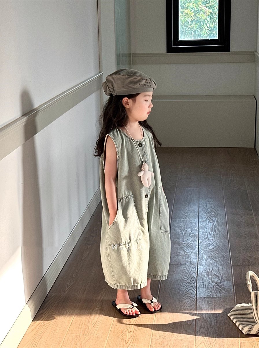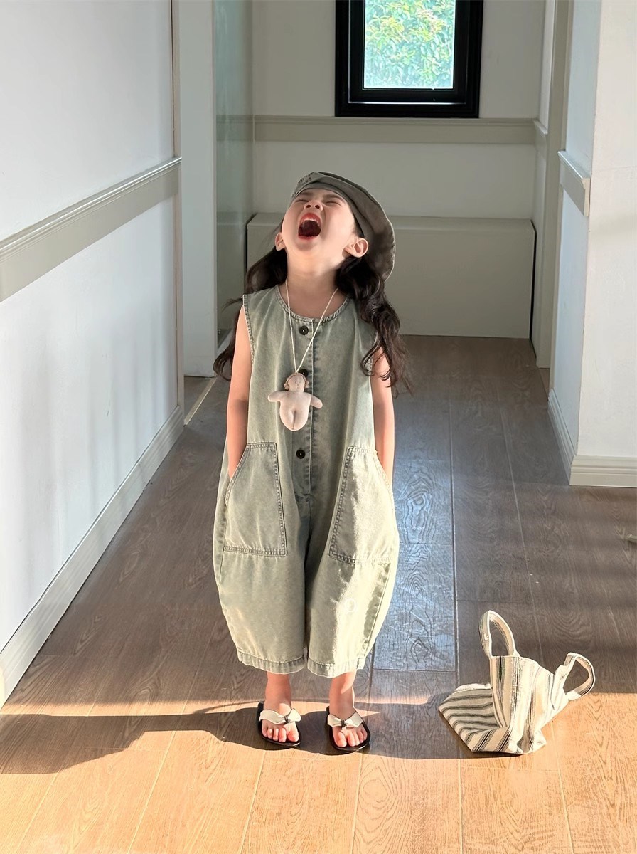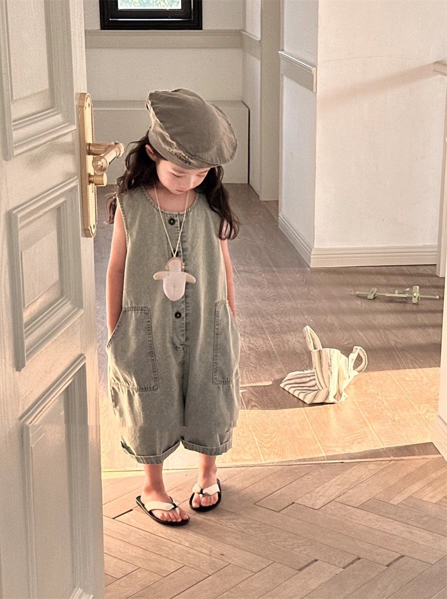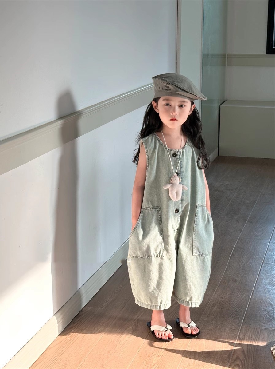 2025 여름 소녀 데님 귀여운 점프 슈트 한국 복고풍 스타일 귀여운 아기 패션 표준 매칭스토어 가기