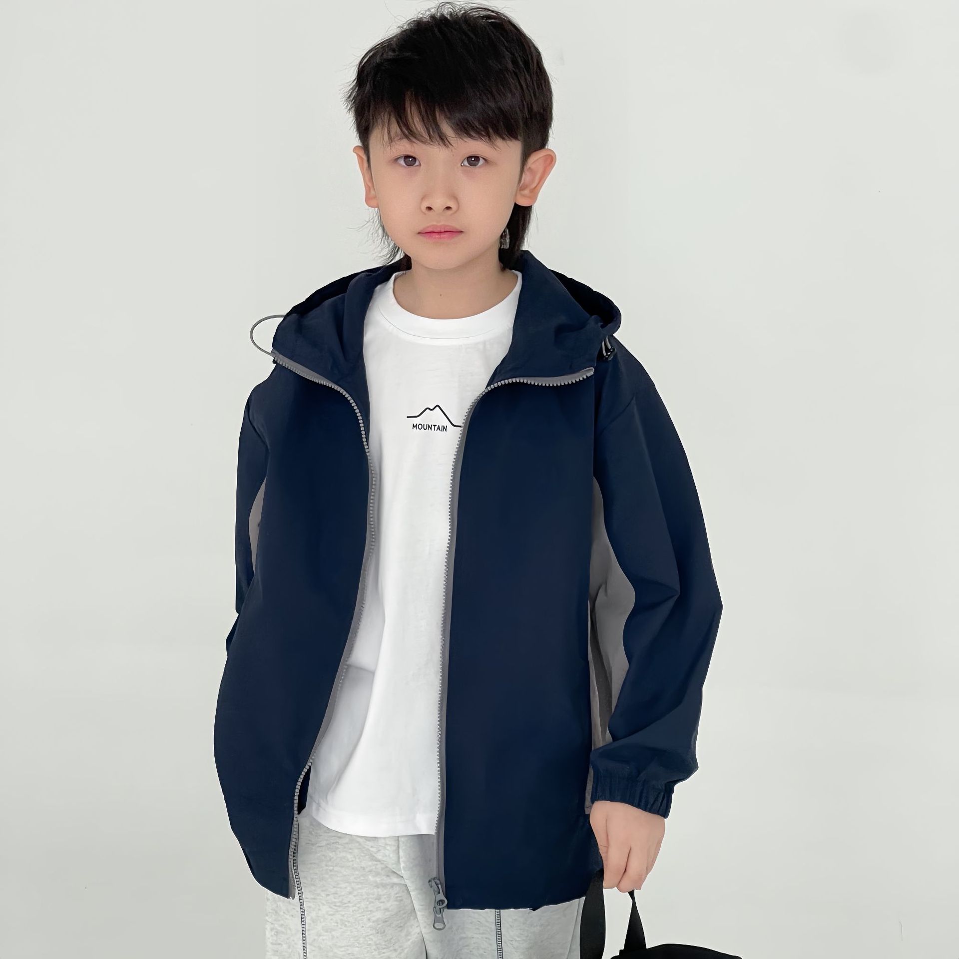 아동복 코트 2025 봄과 여름 새 소년 대비 컬러 지퍼 코트 후드 루즈 재킷 코트 컬러 차단 코트스토어 가기