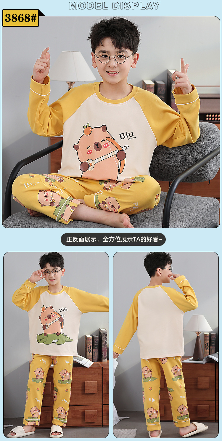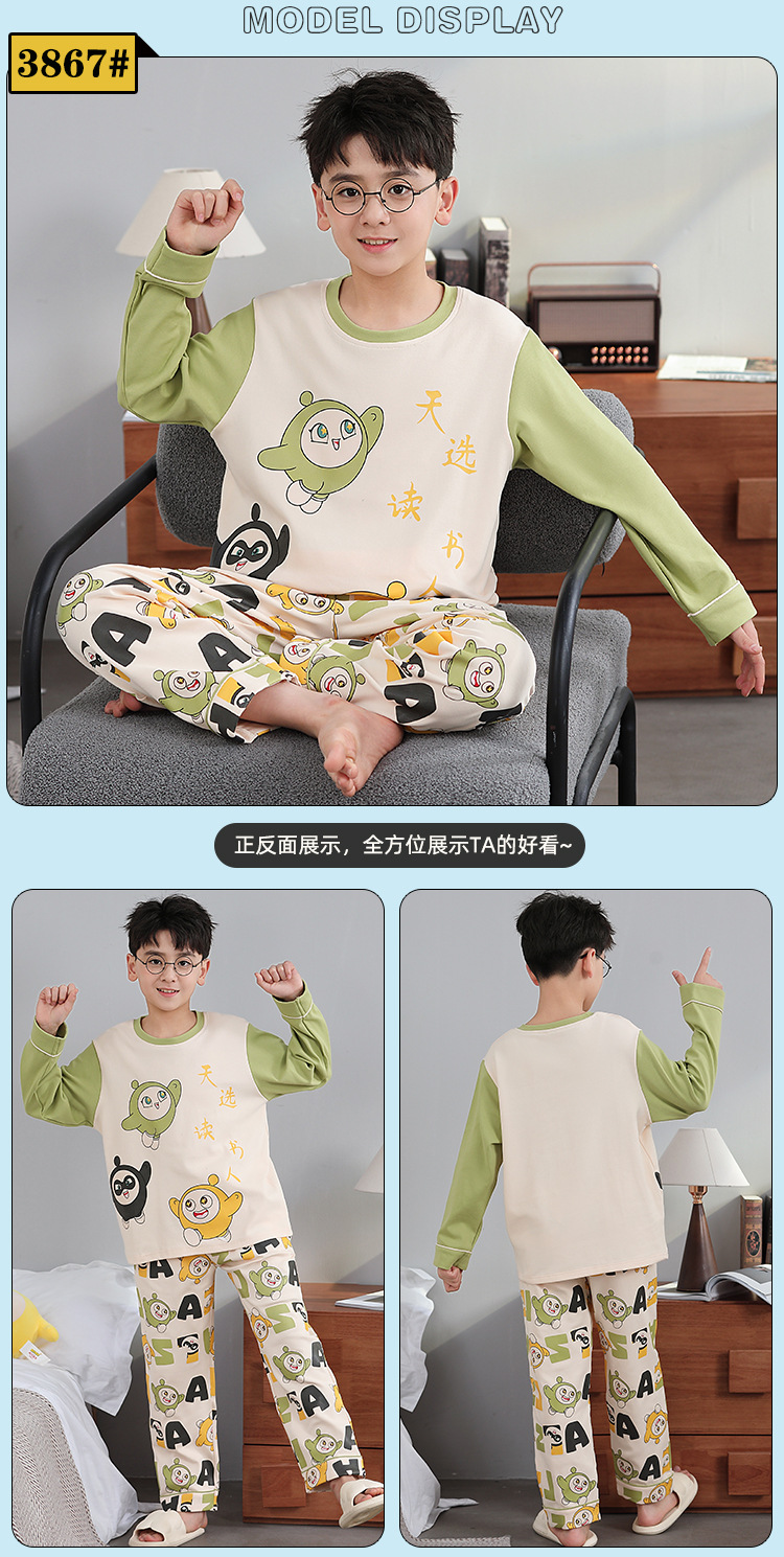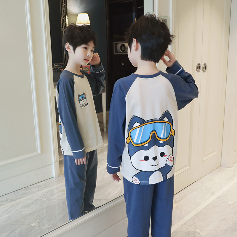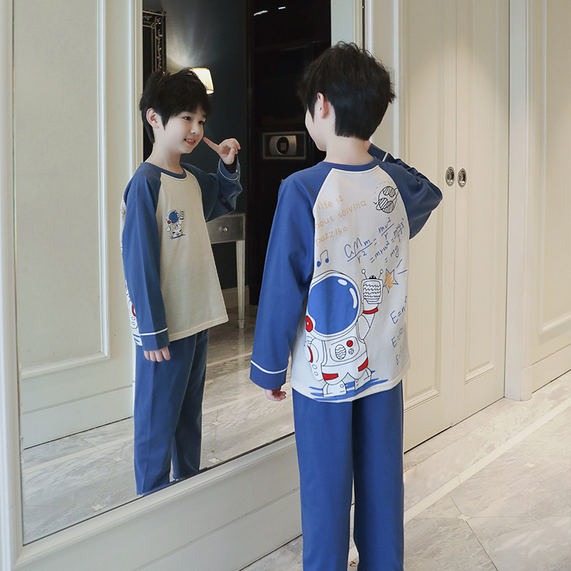 소년 잠옷 봄과 가을 작은 소년을위한 얇은 긴 소매 세트 중 큰 어린이 2025 새로운 어린이 가정 옷 가을스토어 가기
