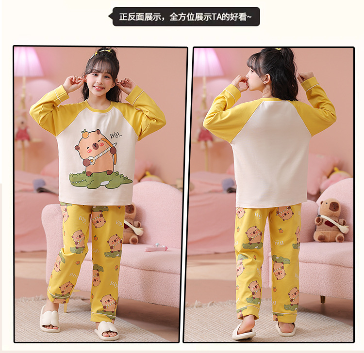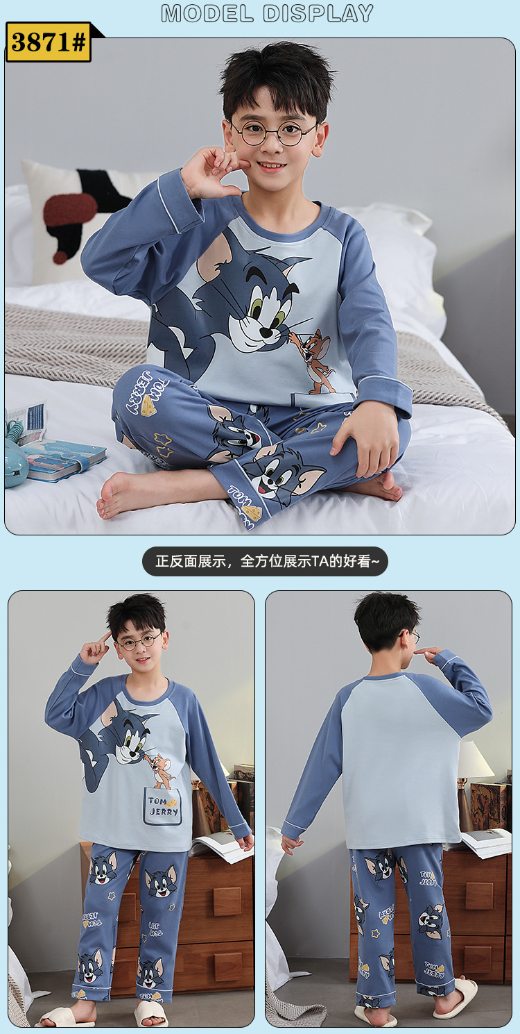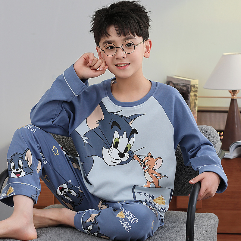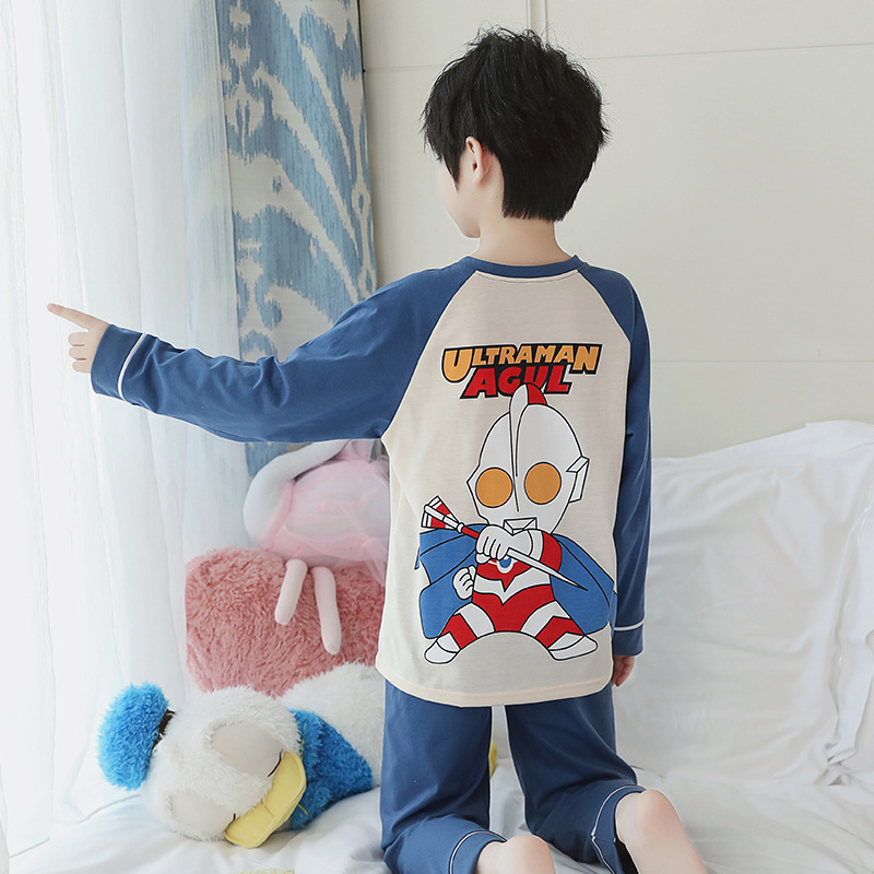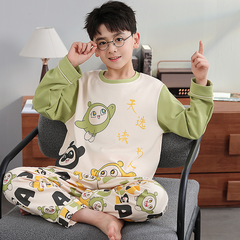 소년 잠옷 봄과 가을 작은 소년을위한 얇은 긴 소매 세트 중 큰 어린이 2025 새로운 어린이 가정 옷 가을