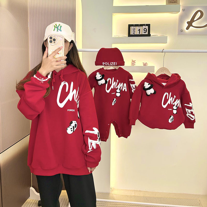 하이 퀄리티 부모-자식 패션 가을과 겨울 새로운 느슨한 캐주얼 패션 올 매치 중국 스타일 레드 후드 땀