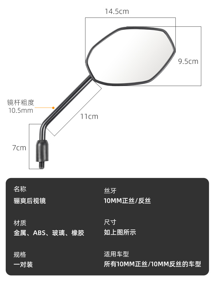 Lishuang 백미러 HJ125K-5-19-20-30 HJ150-7-8-C 반전 미러는 Haojue 오토바이에 적합합니다.