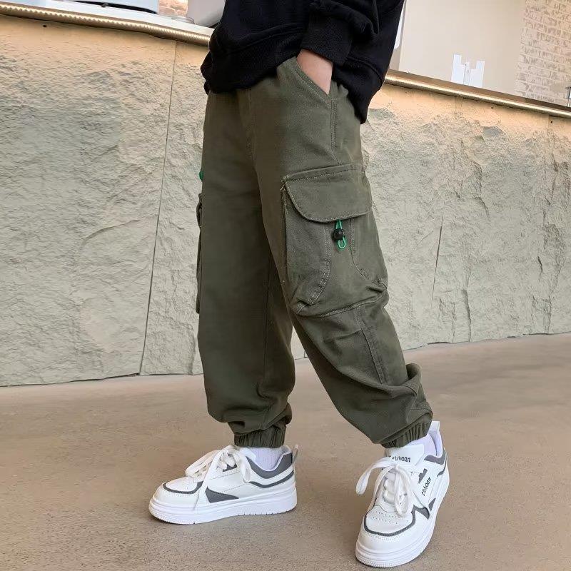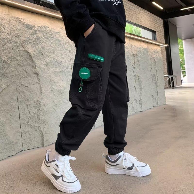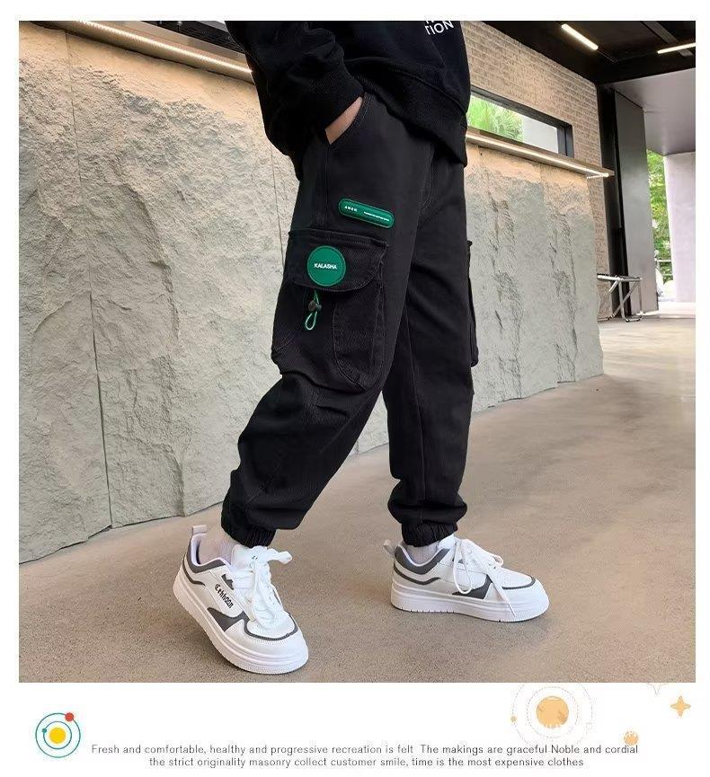 아동복 소년 봄 바지 2024 새로운 어린이 봄, 가을 스타일 중대형 아동 바지 봄 소년 작업복 유행