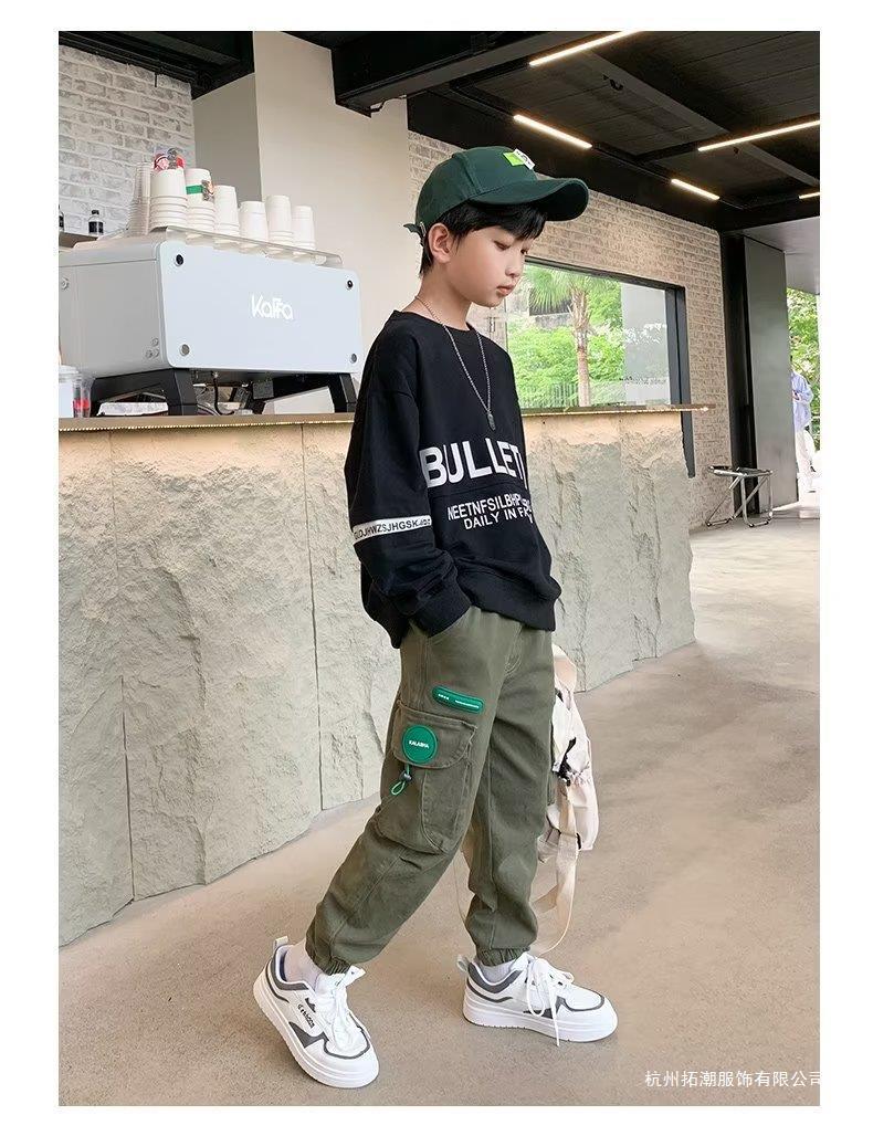 아동복 소년 봄 바지 2024 새로운 어린이 봄, 가을 스타일 중대형 아동 바지 봄 소년 작업복 유행스토어 가기