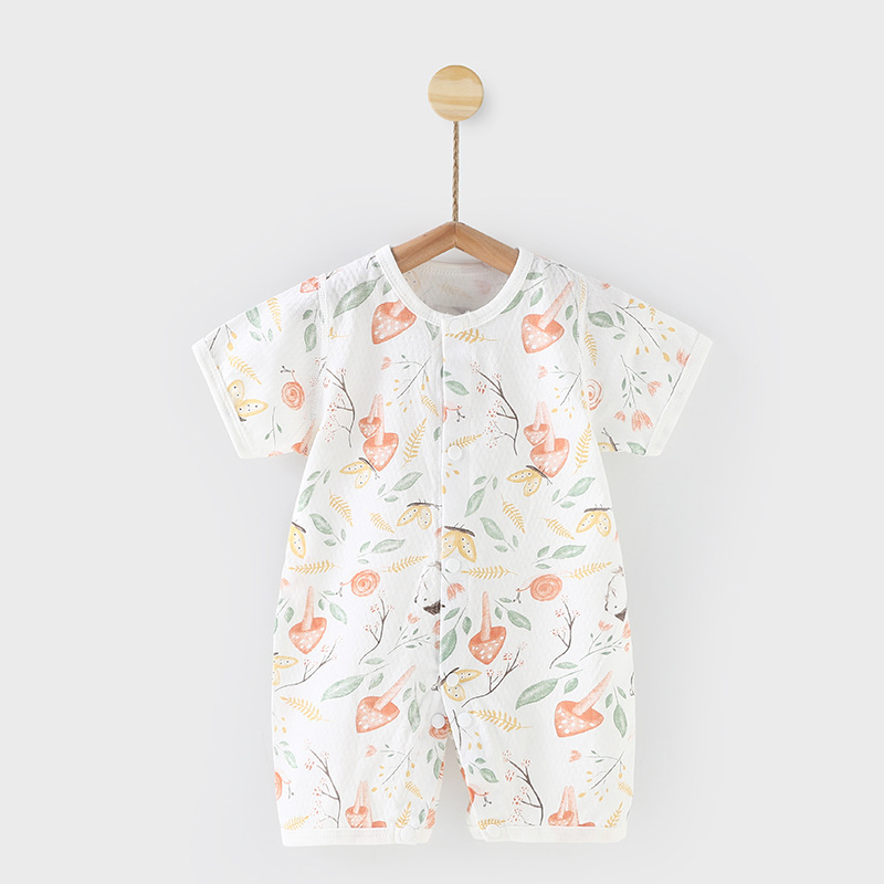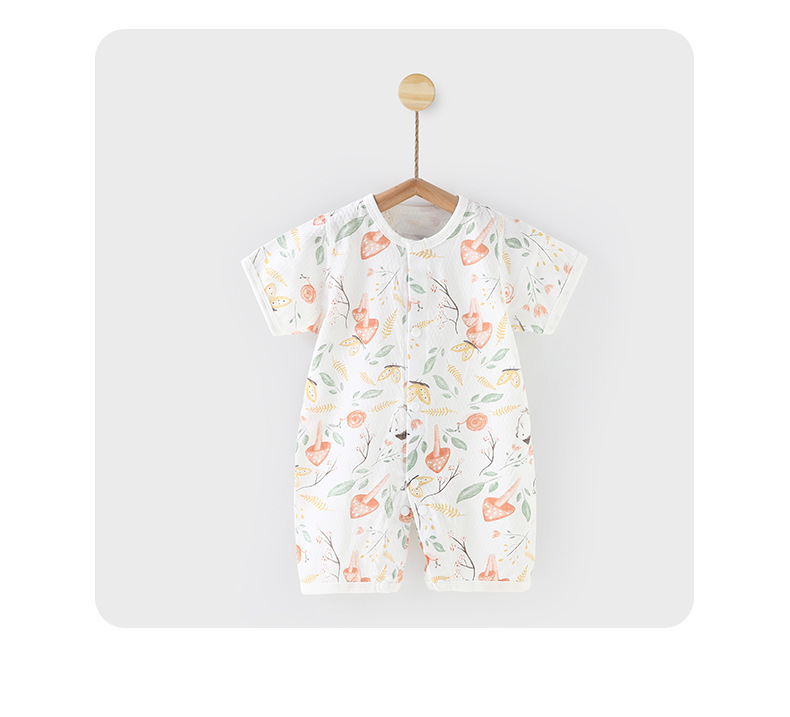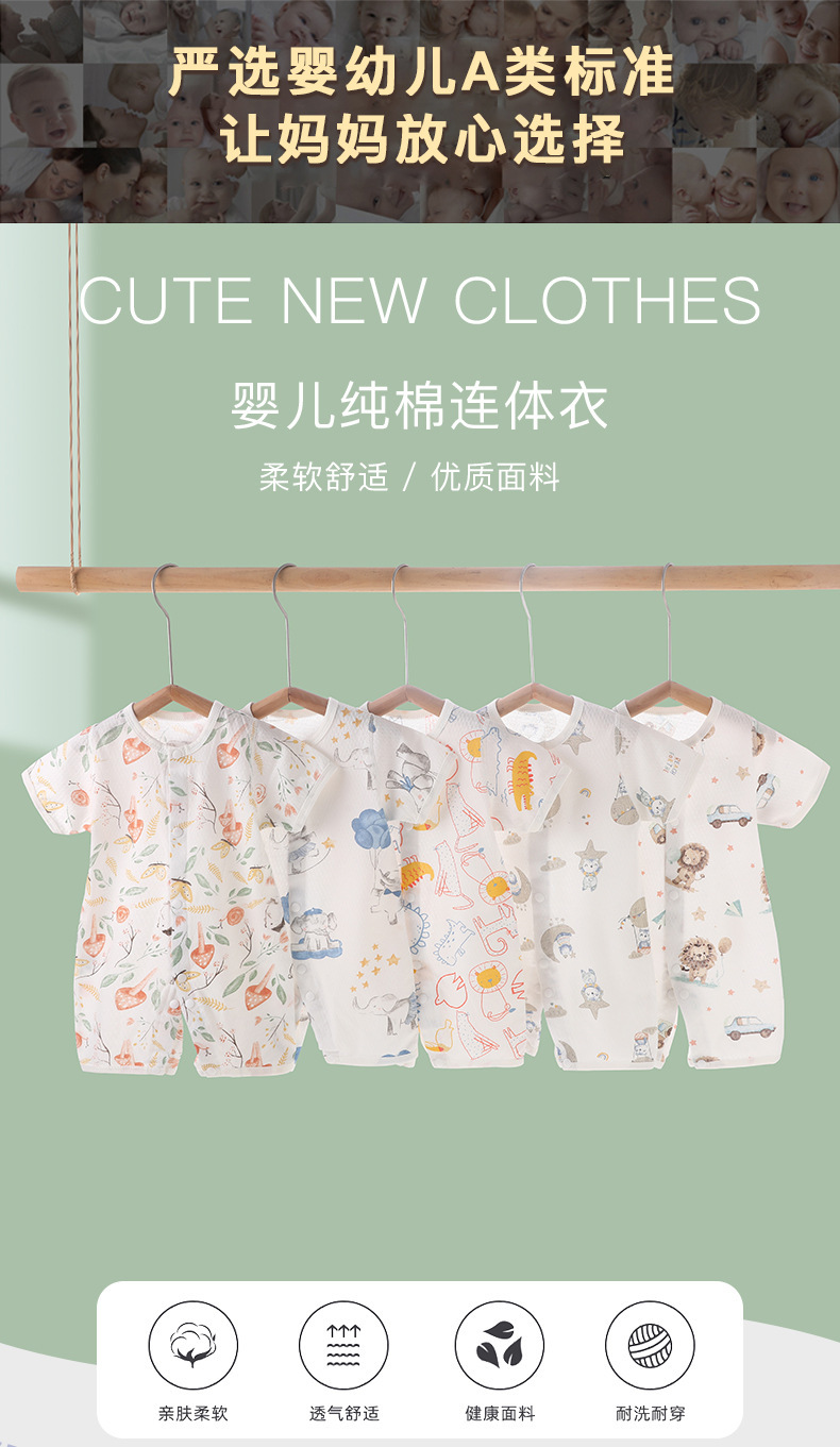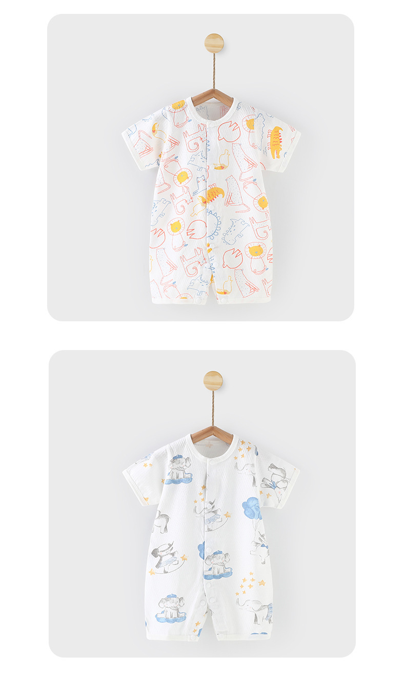 아기 반팔 점프 슈트, 순면, 뼈없는 여름 얇은 옷, 신생아 옷, 남성과 여성의 아기 크롤링 옷, 여름 옷스토어 가기