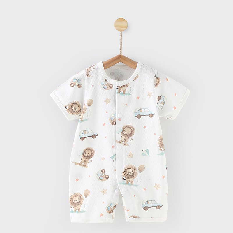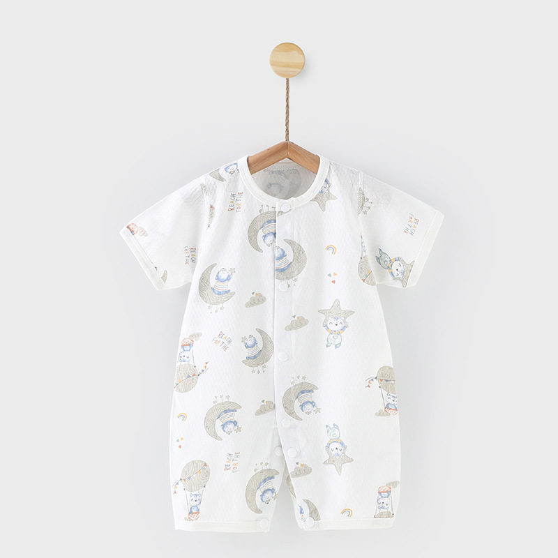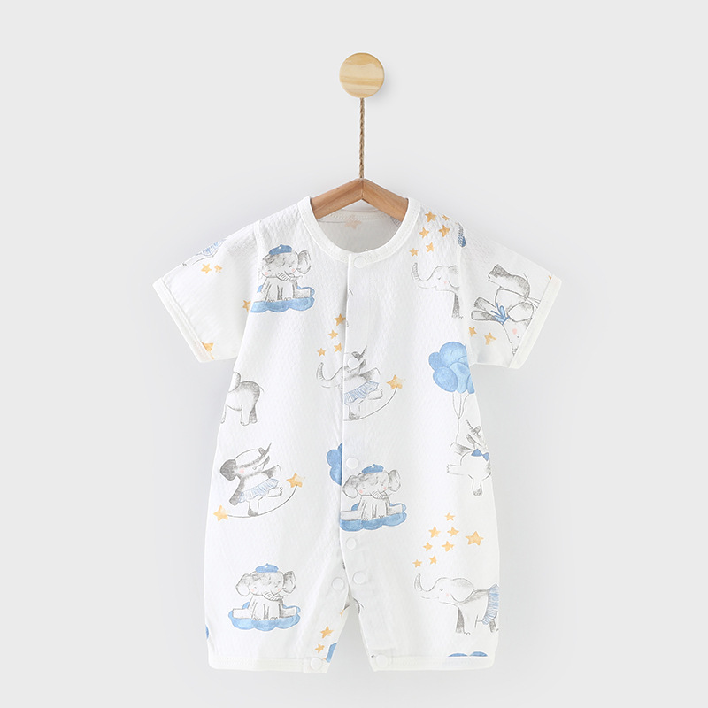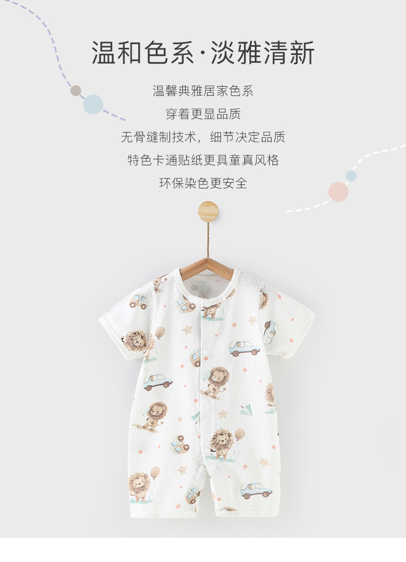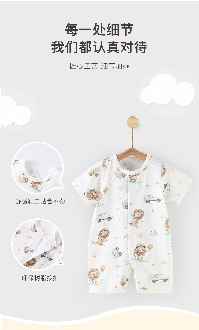 아기 반팔 점프 슈트, 순면, 뼈없는 여름 얇은 옷, 신생아 옷, 남성과 여성의 아기 크롤링 옷, 여름 옷스토어 가기