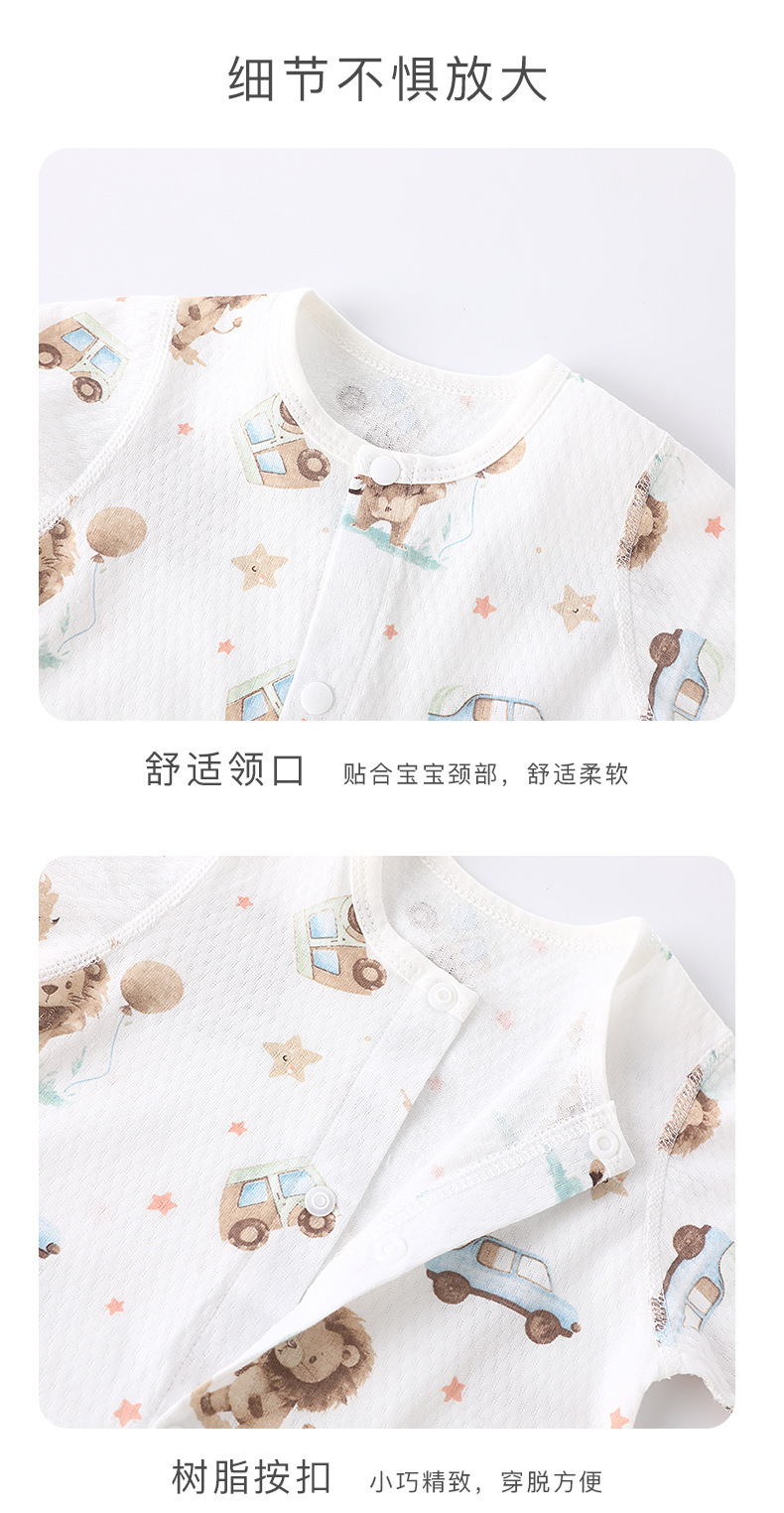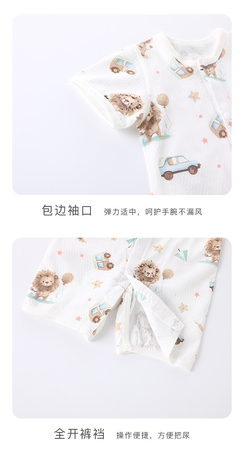 아기 반팔 점프 슈트, 순면, 뼈없는 여름 얇은 옷, 신생아 옷, 남성과 여성의 아기 크롤링 옷, 여름 옷