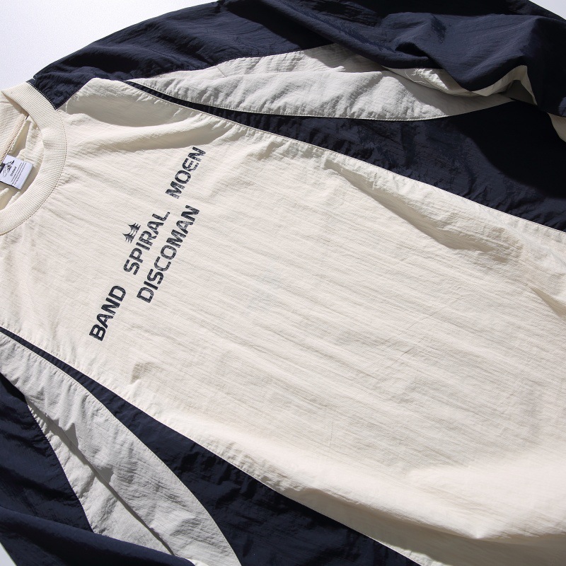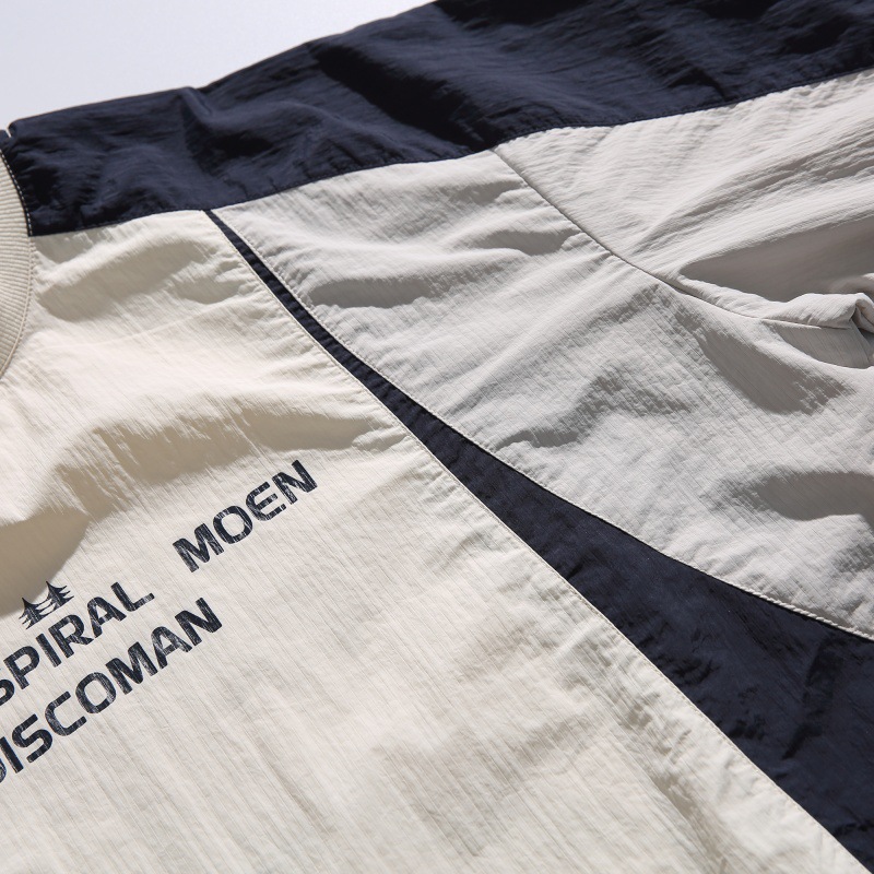 2025 봄 새로운 패션 브랜드 대비 컬러 바느질 야외 기능성 바람 경량 남성용 빠른 건조 긴팔 티셔츠