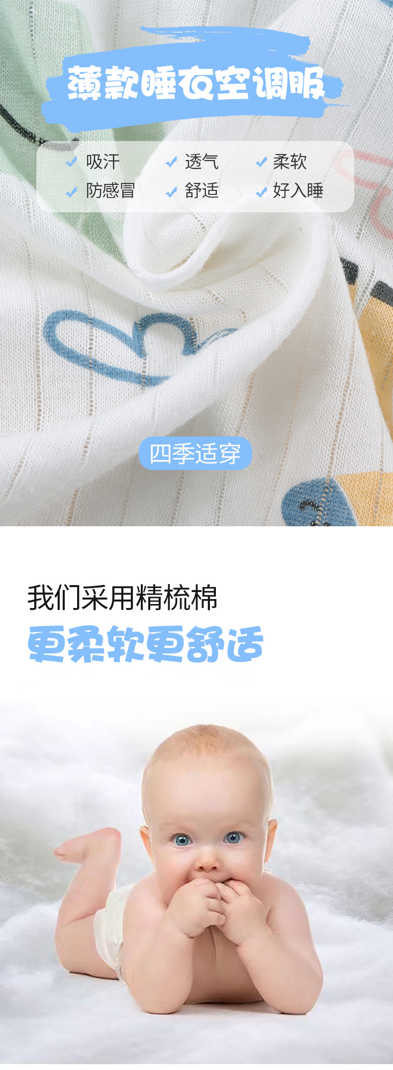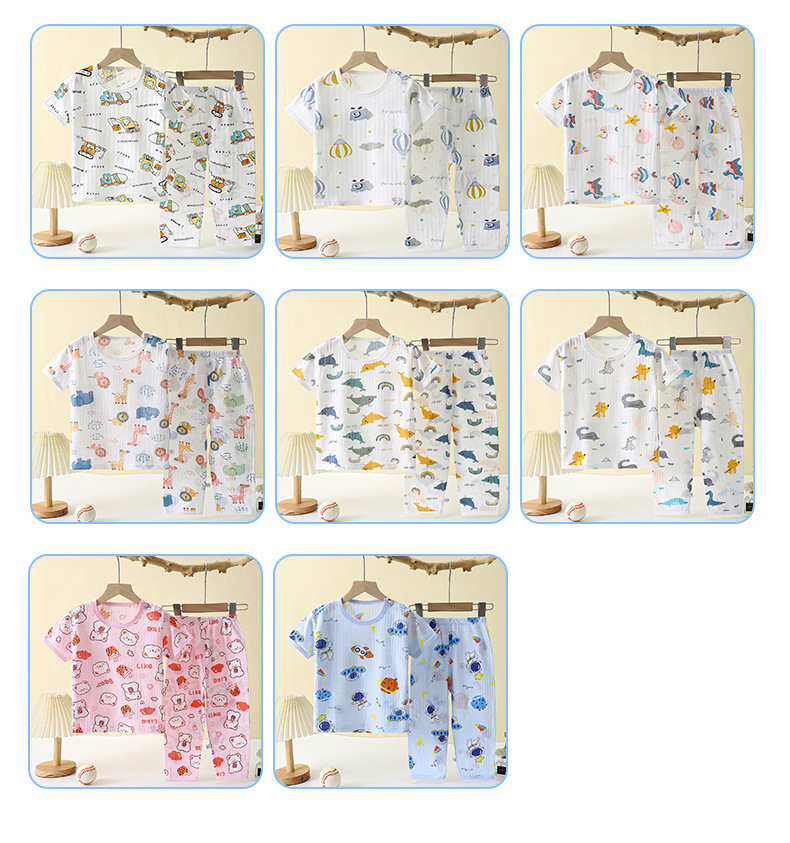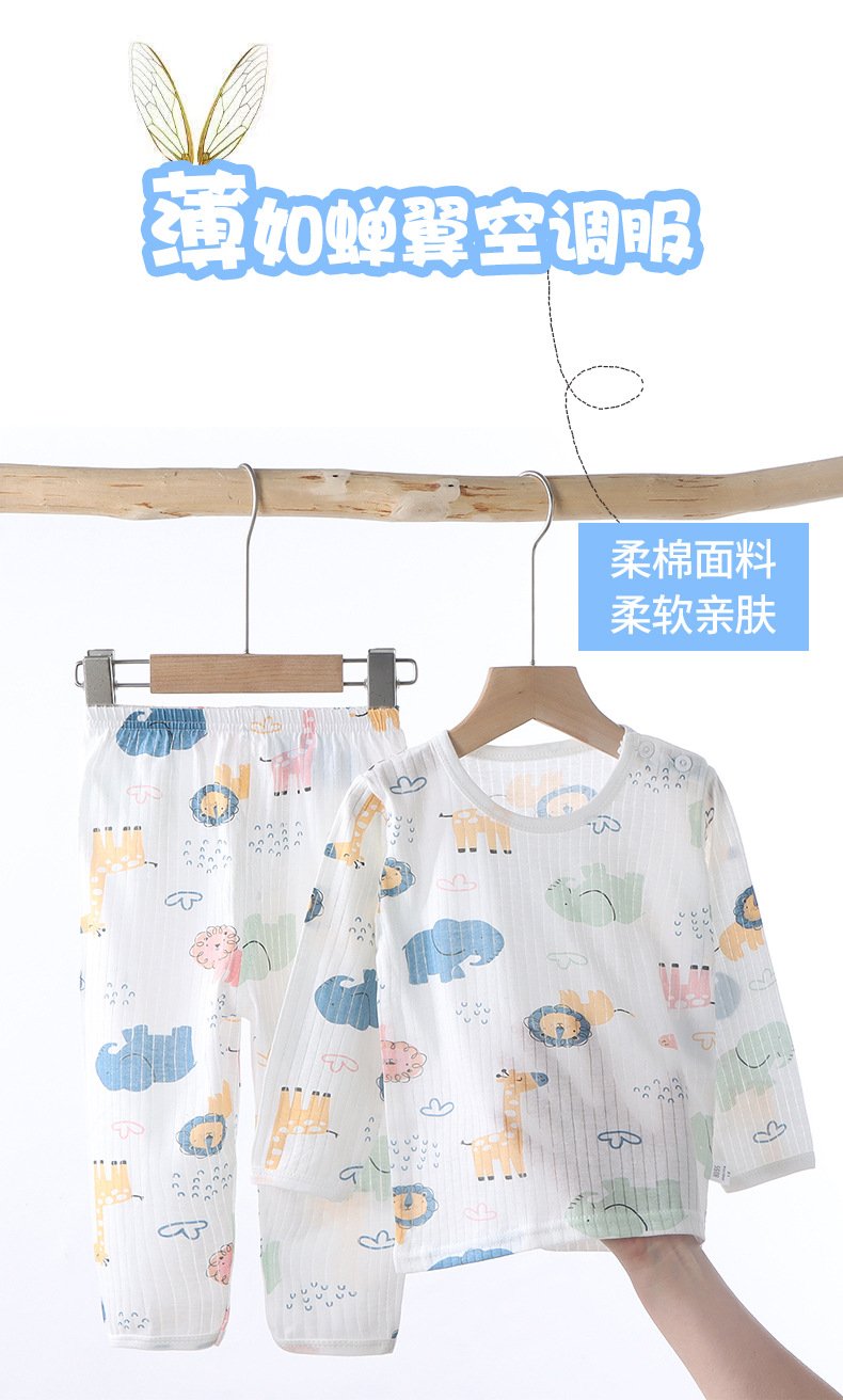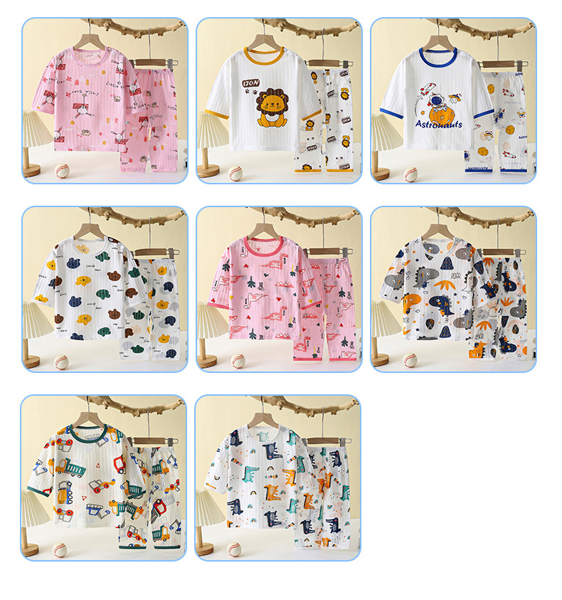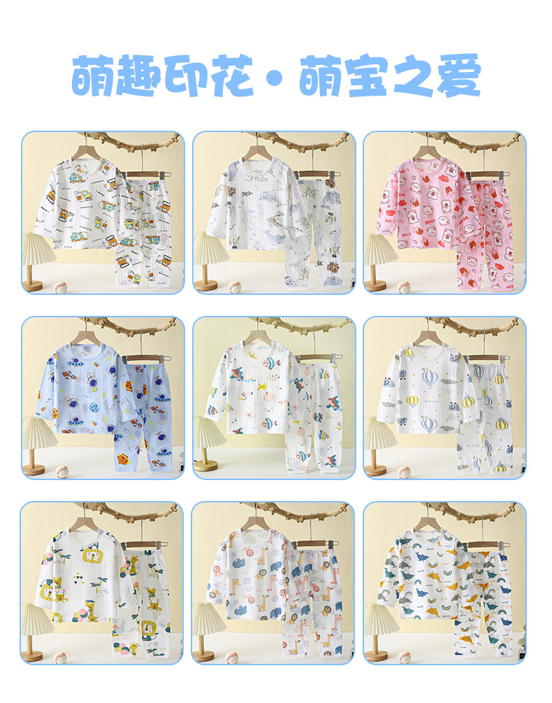 어린이 잠옷 여름 순면 얇은 긴팔 홈 옷 소년 에어컨 옷 만화 소녀 통기성 땀 흡수스토어 가기