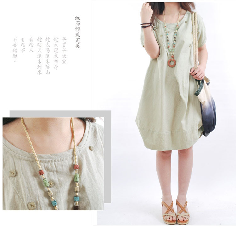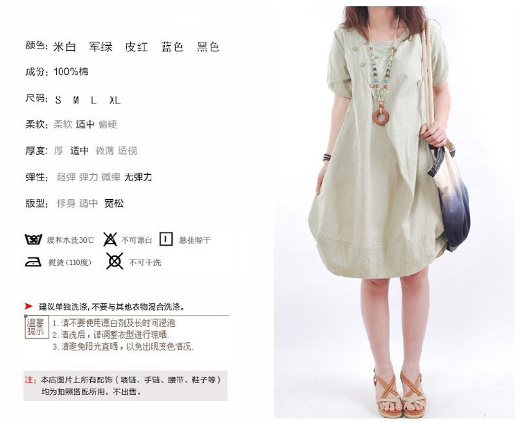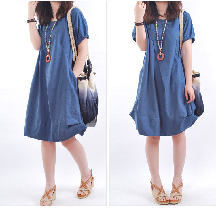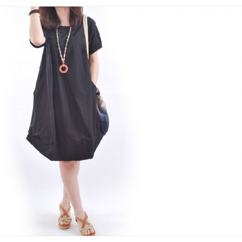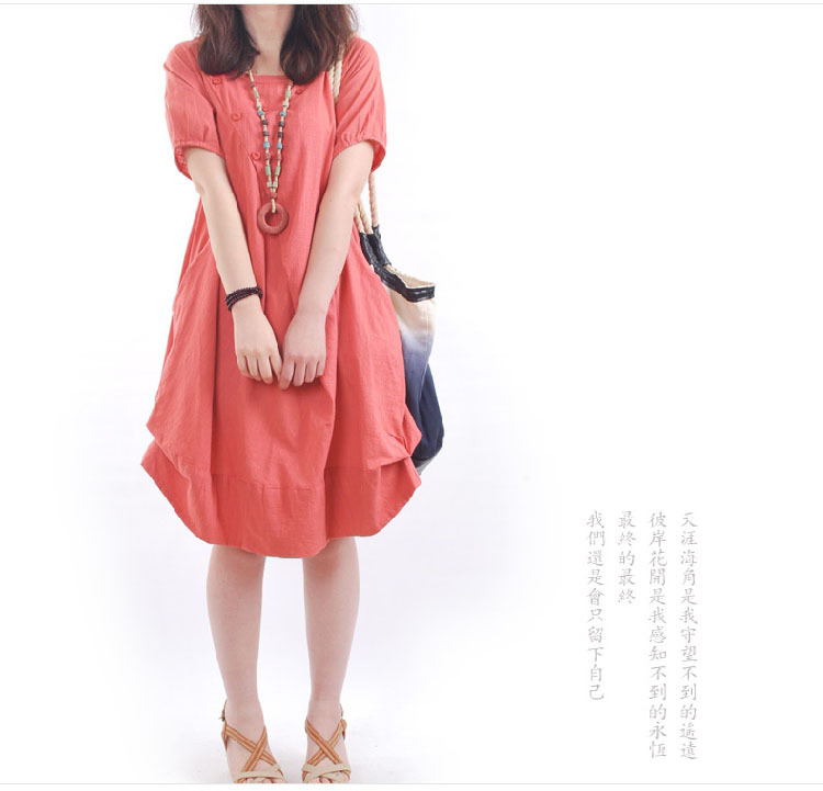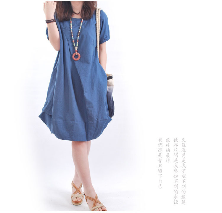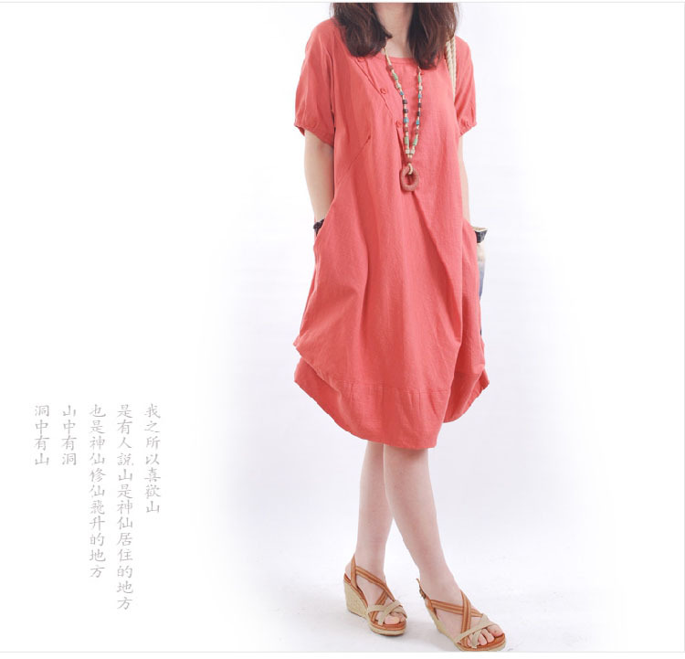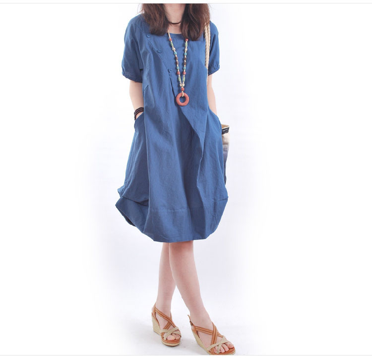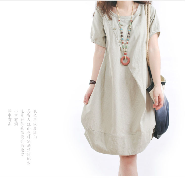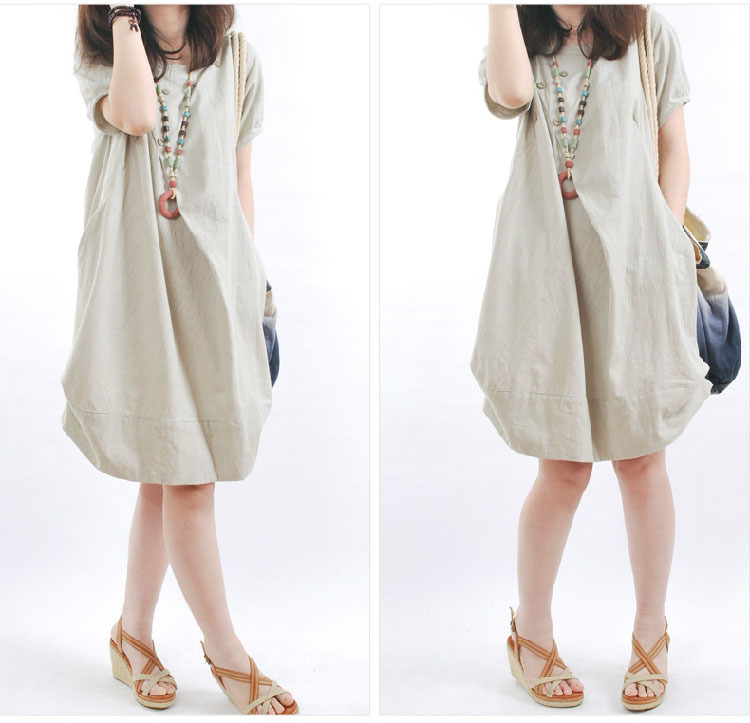 대외 무역 국경 단색 면화 및 리넨 스커트 중간 길이 2025 여름 느슨한 플러스 사이즈 주름진 A 자형 원피스 짧은 소매스토어 가기