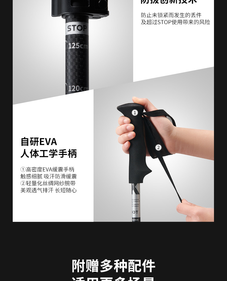 Betheshy 및 실외 캠핑 하이킹 스틱 T800 탄소 울트라 라이트 텔레스코픽 스틱 미끄럼 방지 목발 하이킹 장비스토어 가기