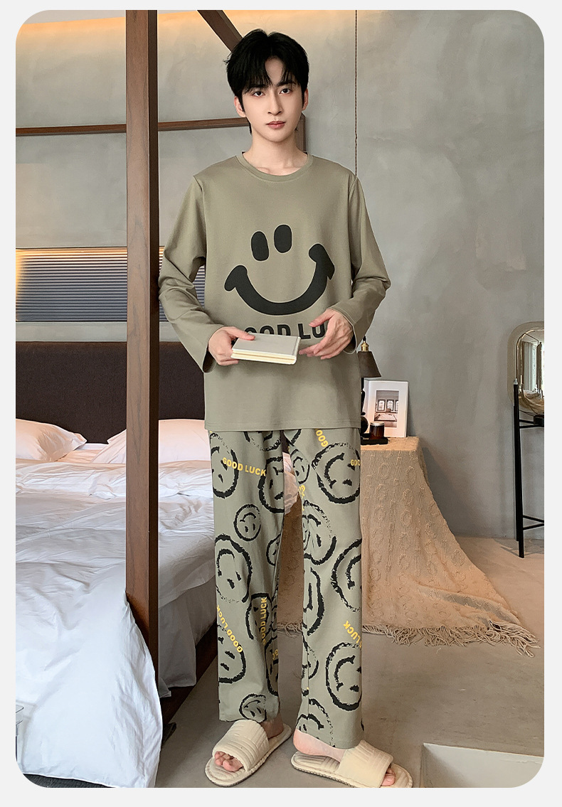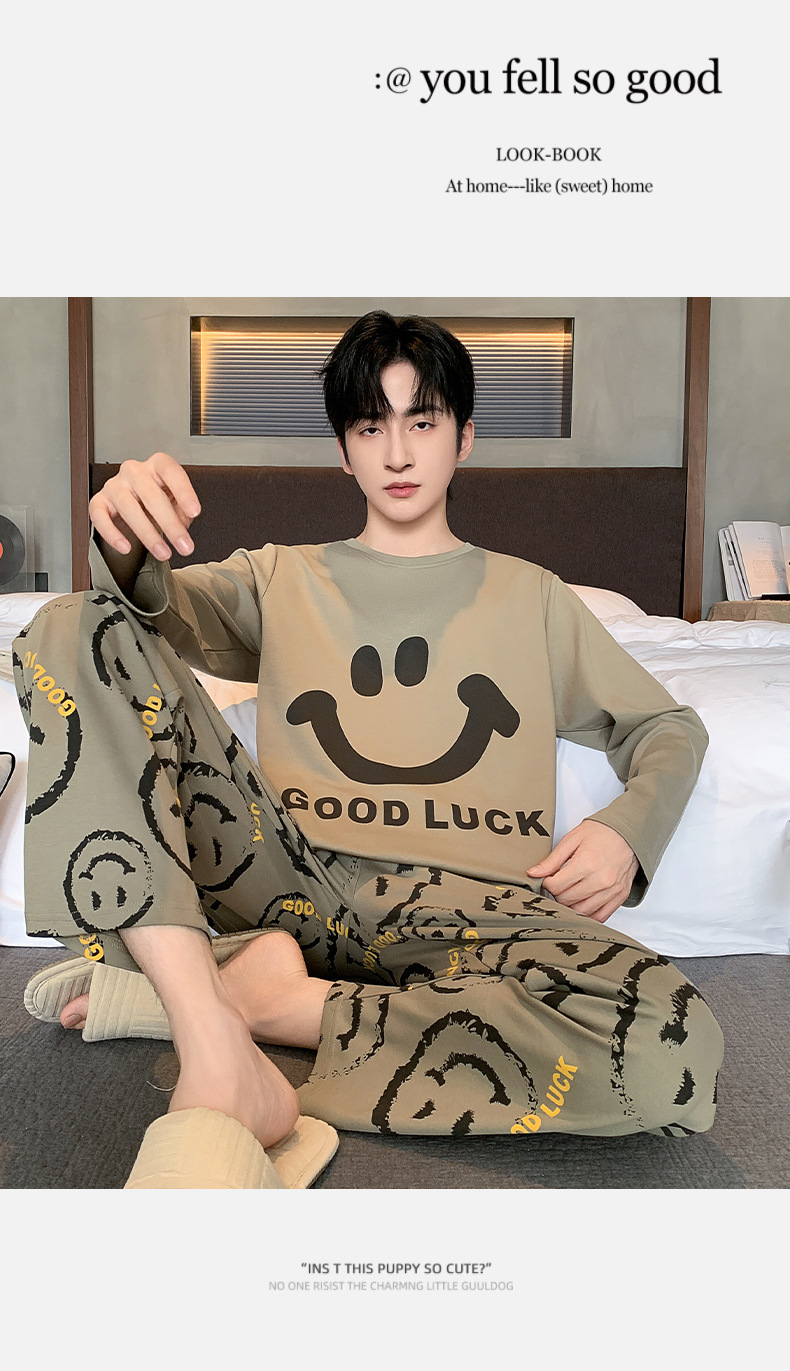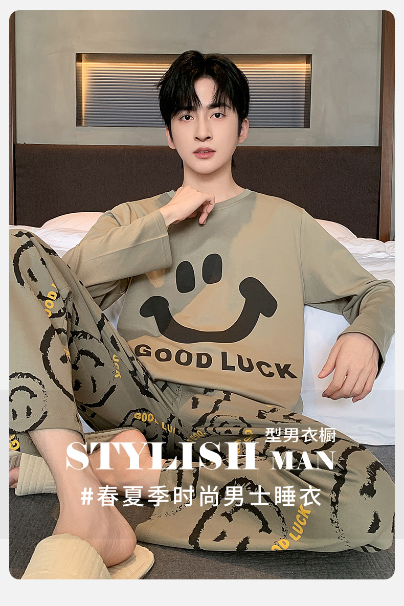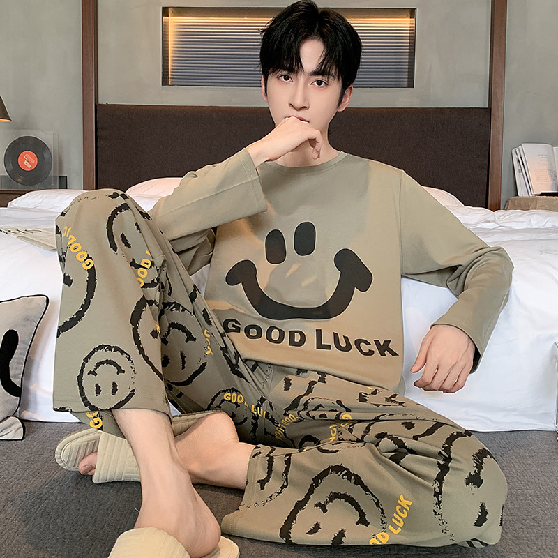 남자 잠옷 봄 가을면 긴 소매 십대 소년 큰 소년 2025 새 집 옷 세트스토어 가기