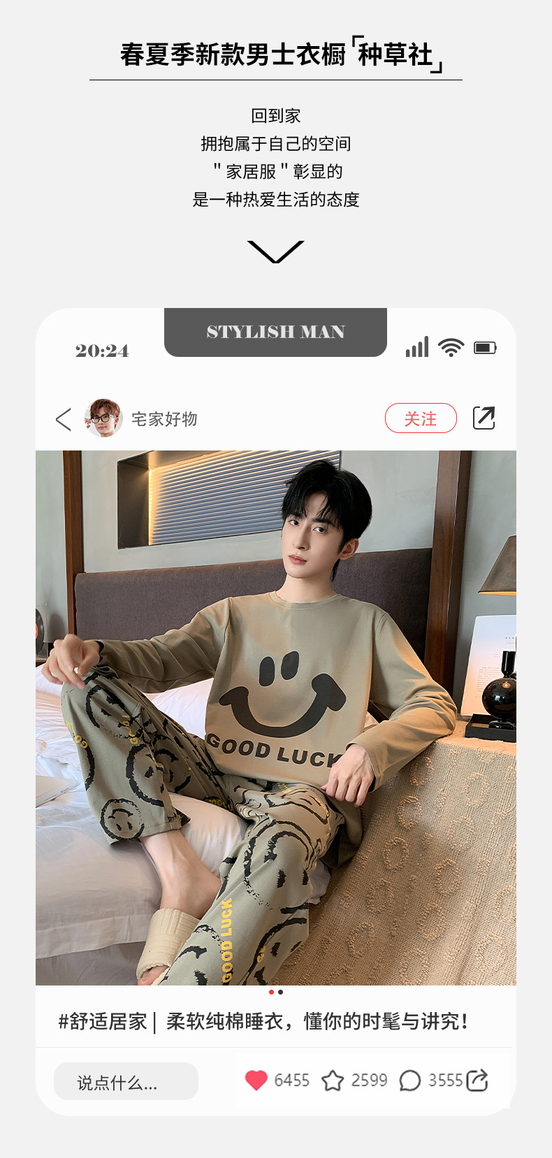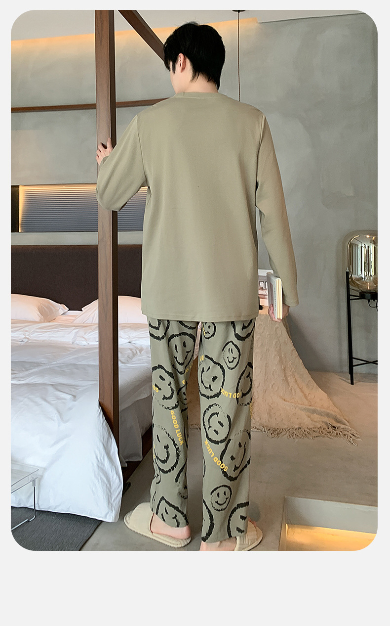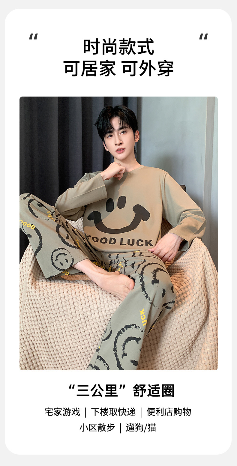 남자 잠옷 봄 가을면 긴 소매 십대 소년 큰 소년 2025 새 집 옷 세트스토어 가기