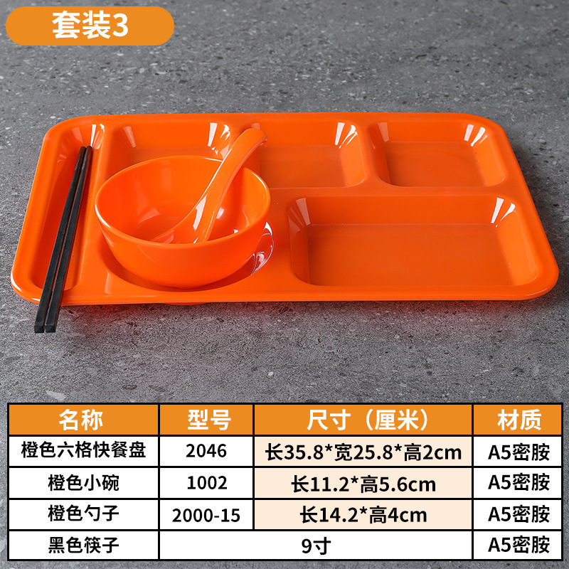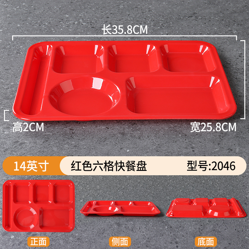 멜라민 식기 6 칸 패스트 푸드 플레이트 직사각형 공장 학교 매점 구획 플레이트 상업용 플라스틱 쌀 플레이트스토어 가기