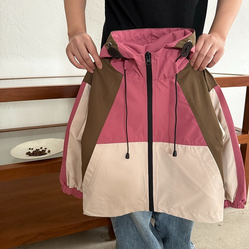 한국 어린이 컬러 매칭 야외 트렌치 코트 2025 봄 서양식 코트 소녀 서양식 재킷 소년 레저 스포츠스토어 가기