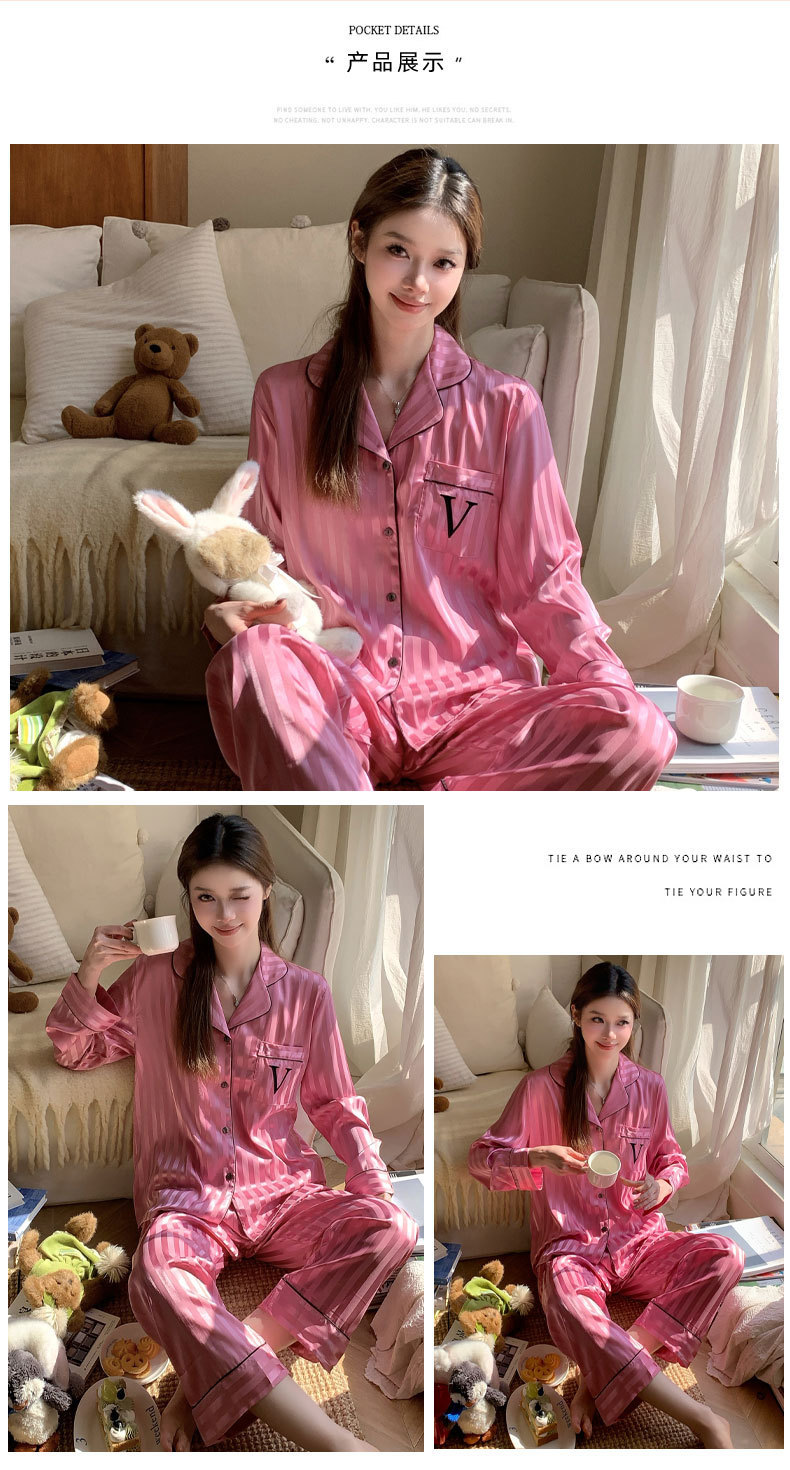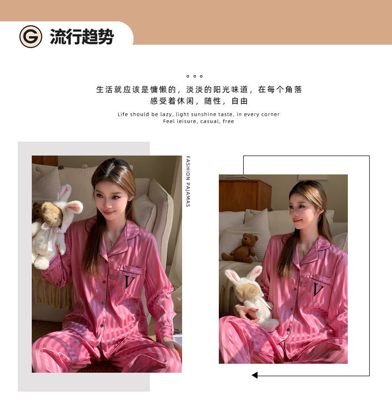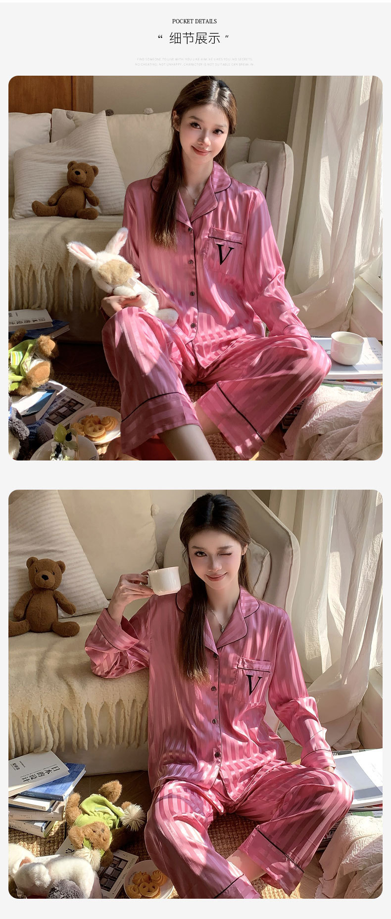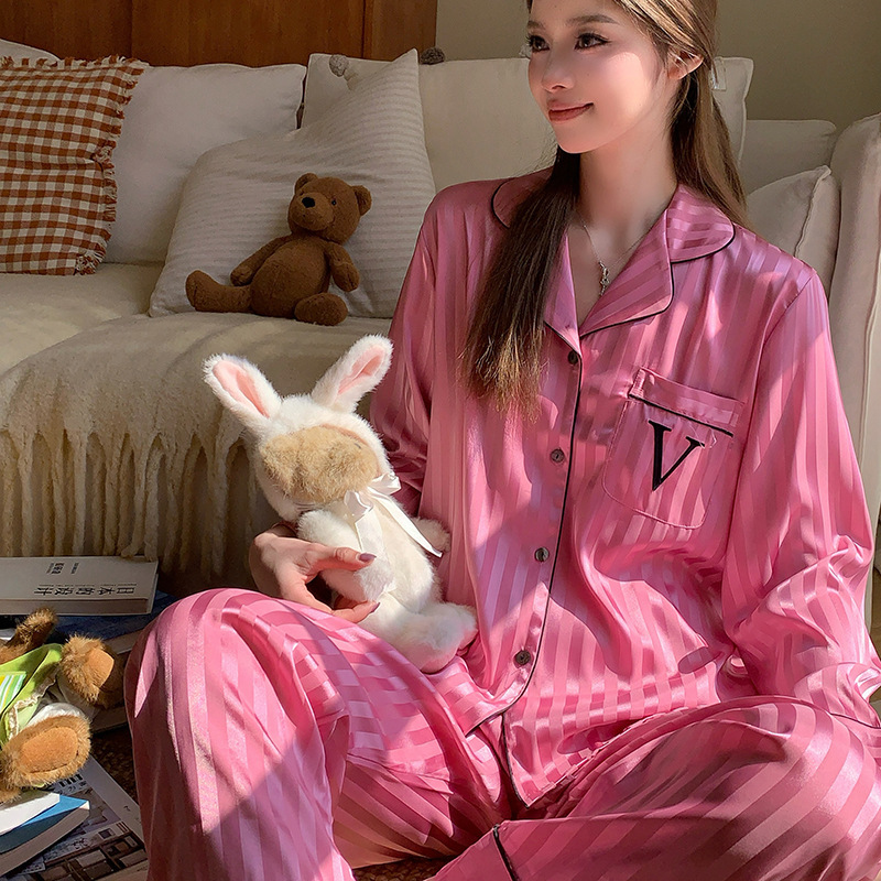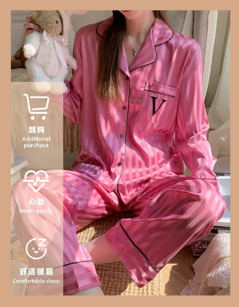 스트라이프 아이스 실크 잠옷 여성의 봄과 가을 Weijiado 비밀 같은 스타일의 하이 엔드 실크 홈 옷 2025 새로운 스타일스토어 가기