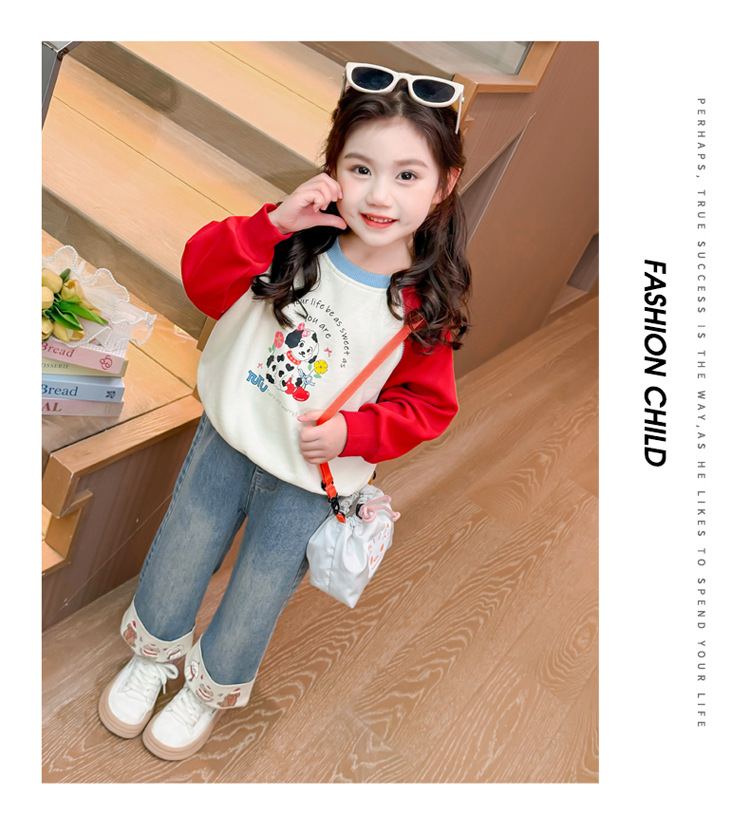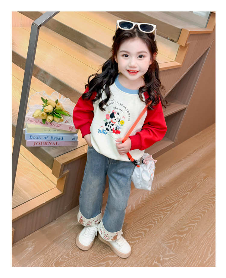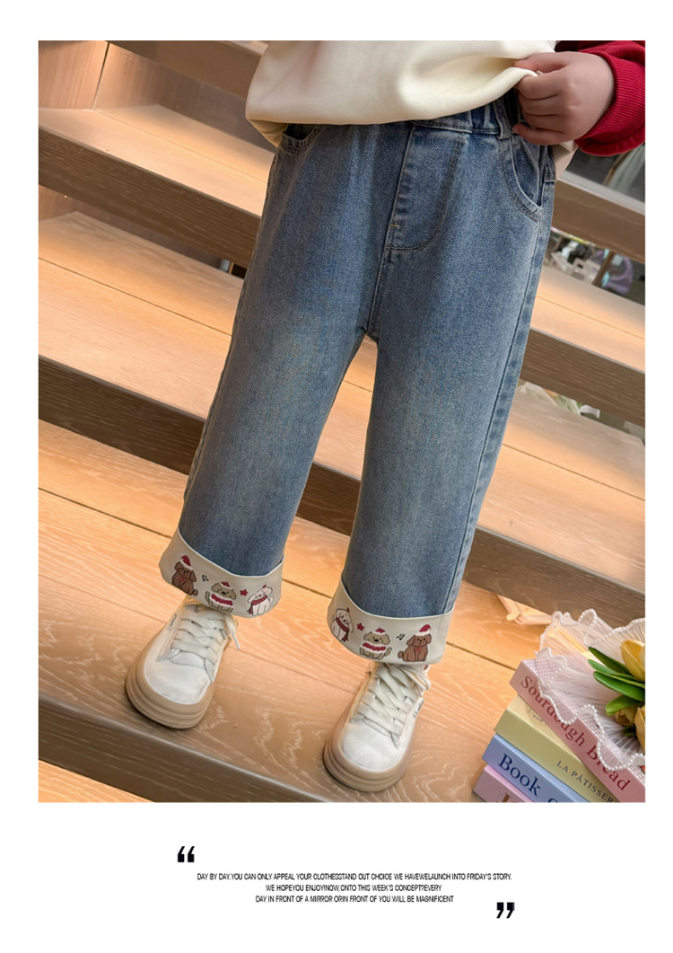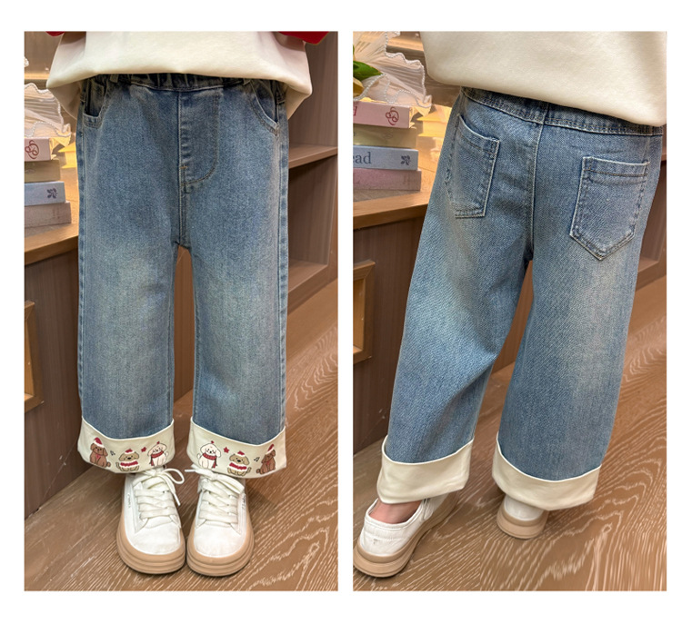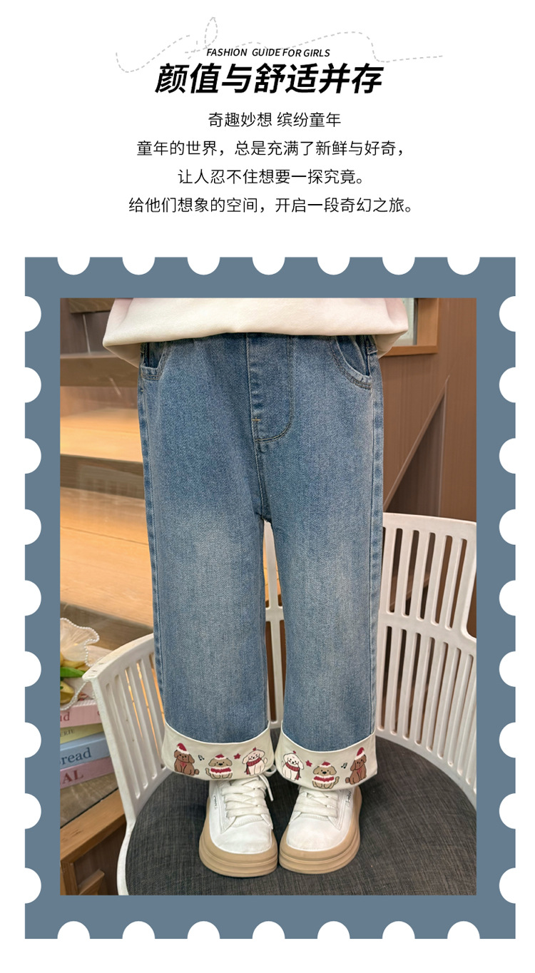 소녀의 만화 강아지 청바지 봄과 가을 2025 새로운 스타일 어린 소녀의 스트레이트-다리 바지 아이들의 넓은 다리 바지