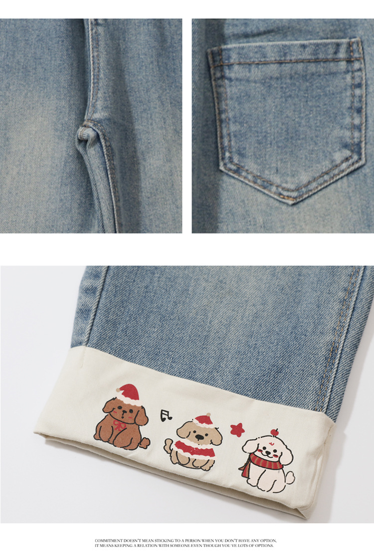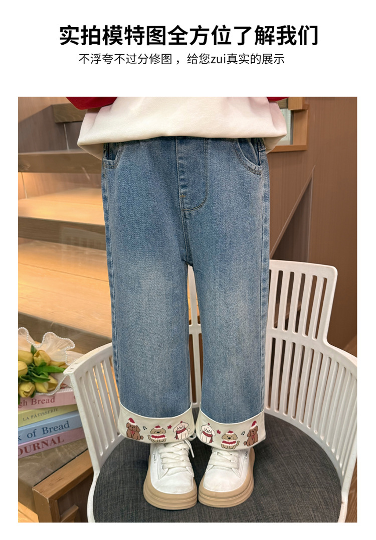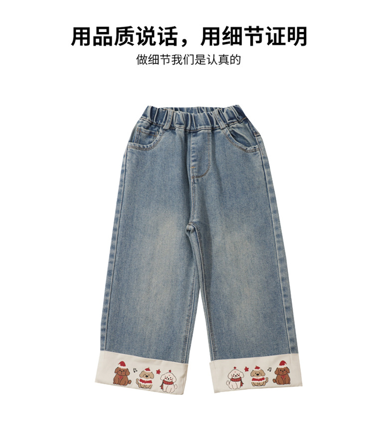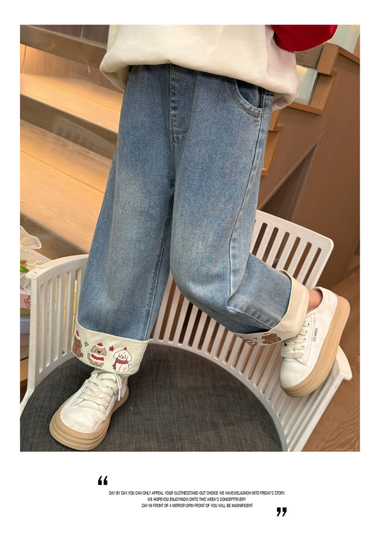 소녀의 만화 강아지 청바지 봄과 가을 2025 새로운 스타일 어린 소녀의 스트레이트-다리 바지 아이들의 넓은 다리 바지스토어 가기
