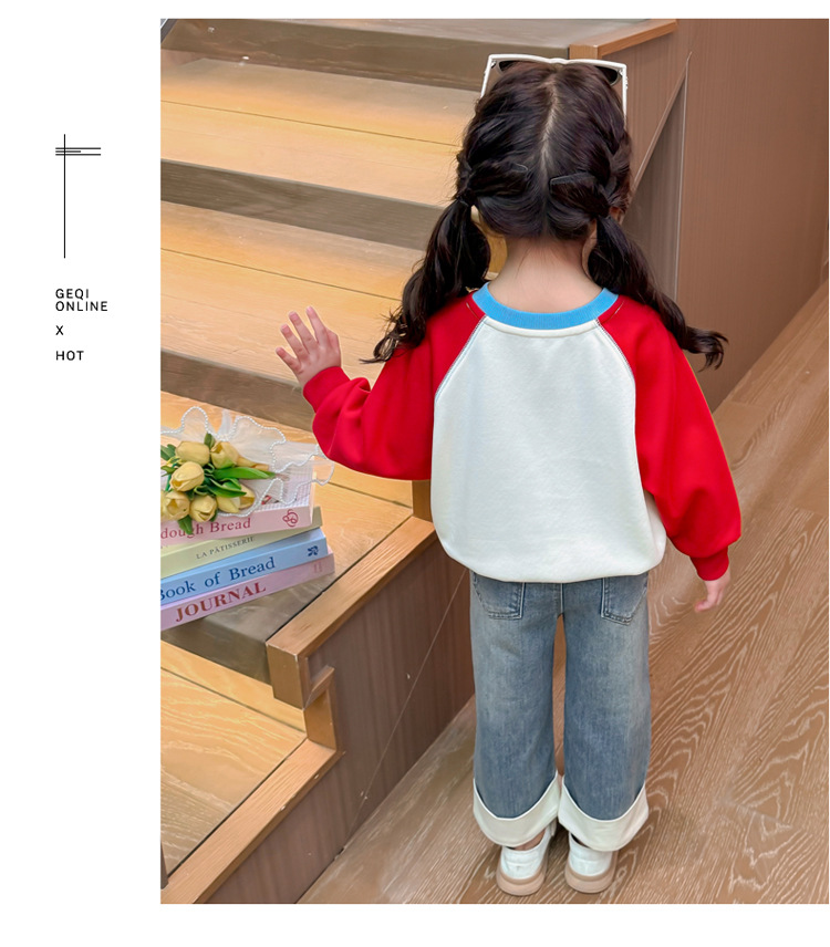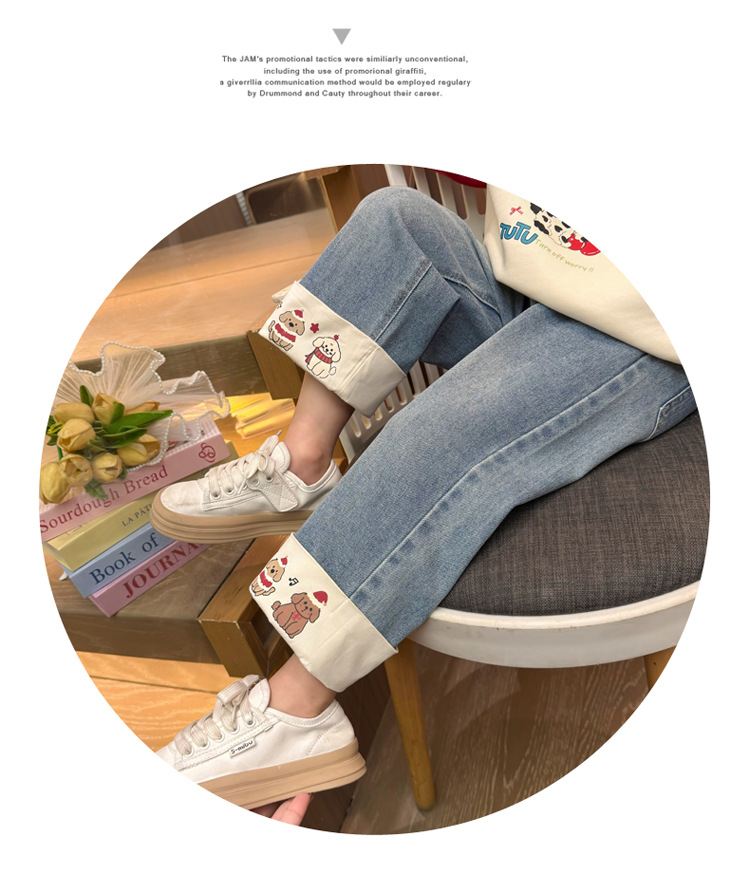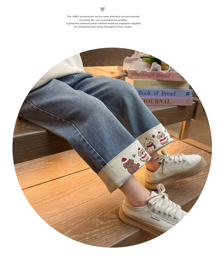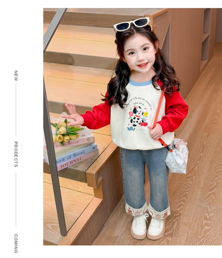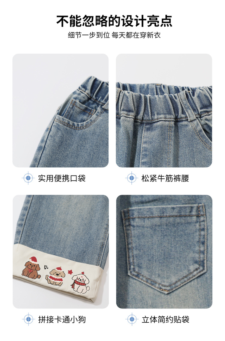 소녀의 만화 강아지 청바지 봄과 가을 2025 새로운 스타일 어린 소녀의 스트레이트-다리 바지 아이들의 넓은 다리 바지스토어 가기