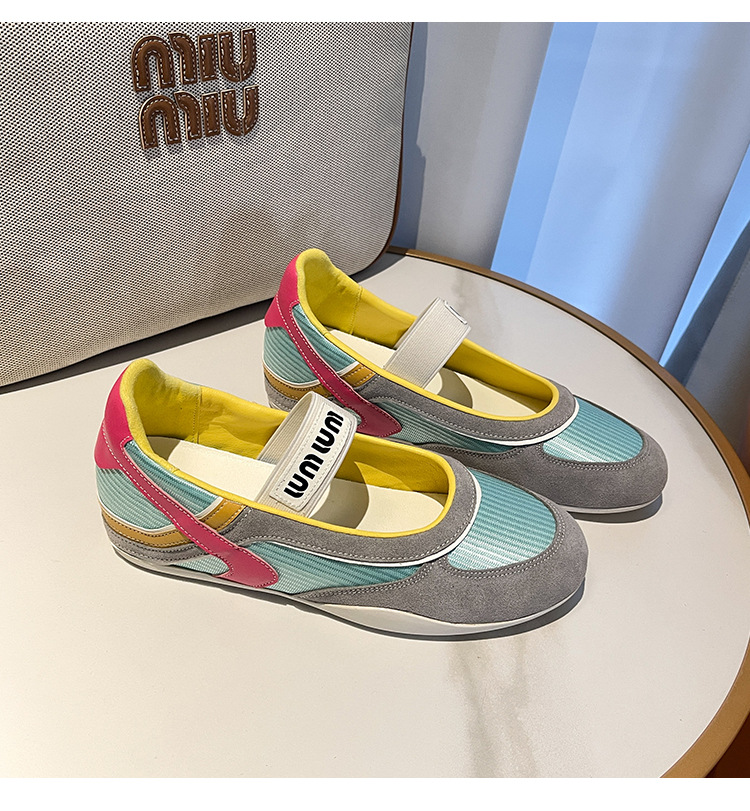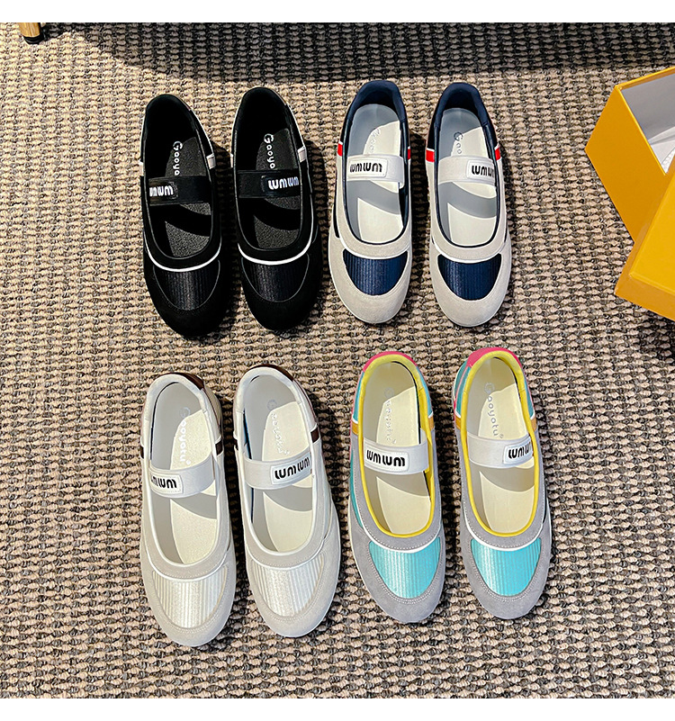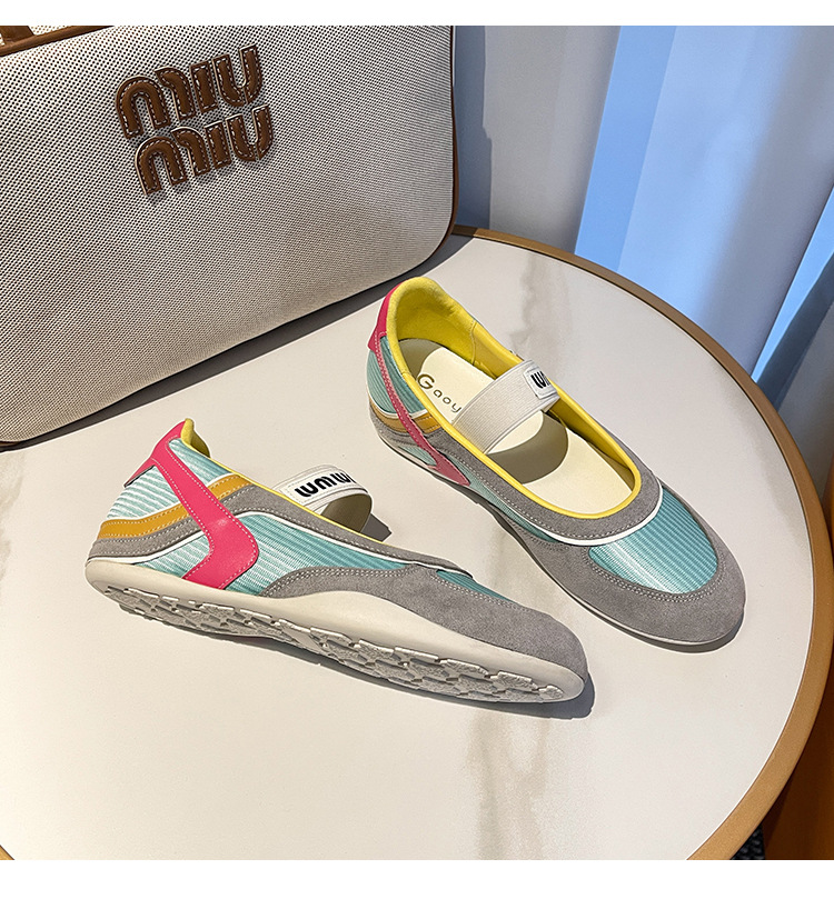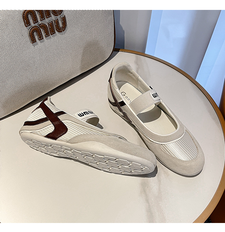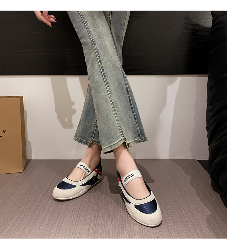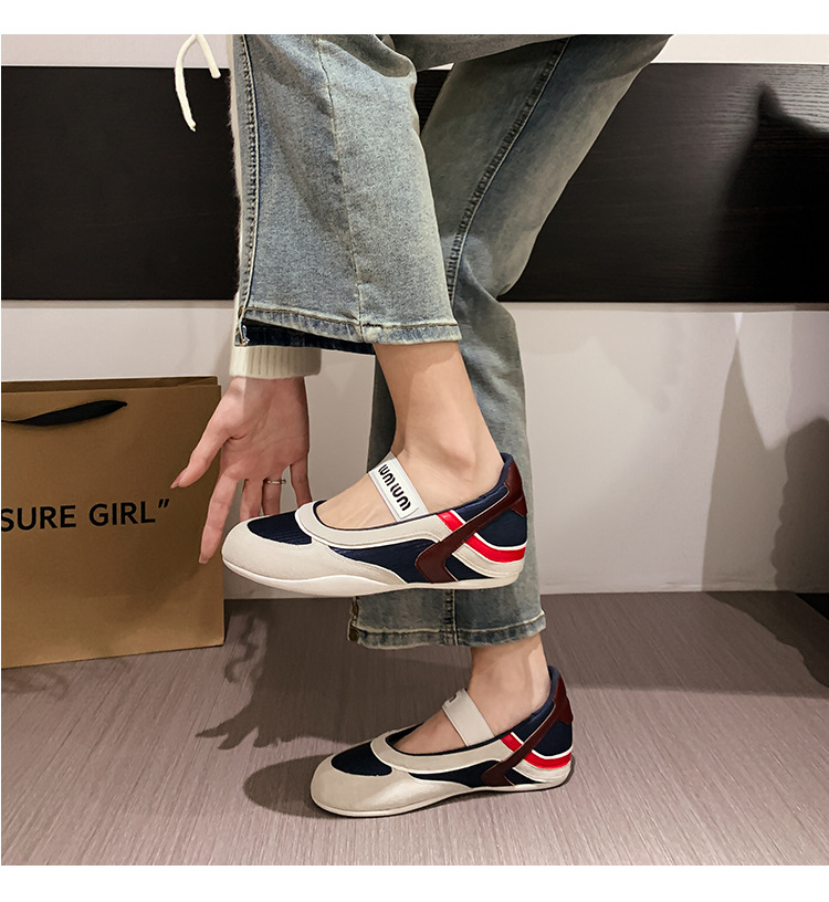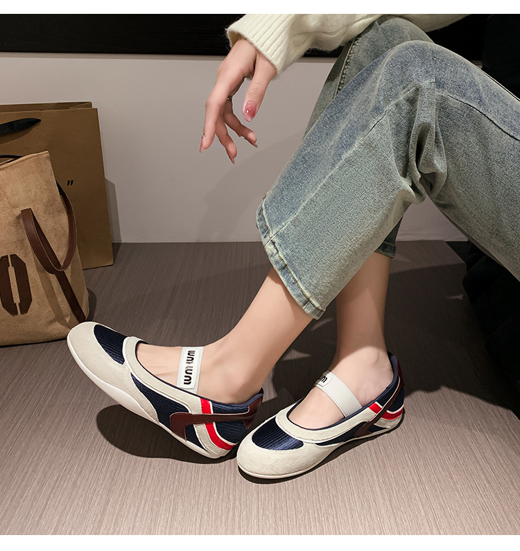 여성용 천연 가죽 메쉬 배색 플랫 슈즈 2026년 신상 초봄 스타일 라운드 토 슬립온 캐주얼 메리제인 슈즈스토어 가기