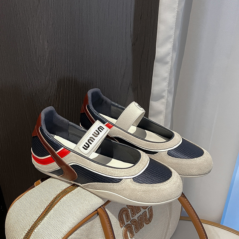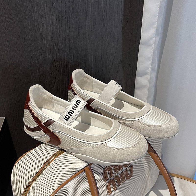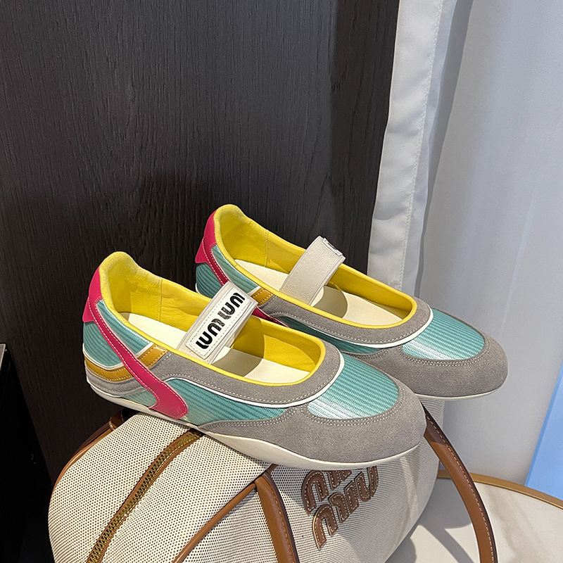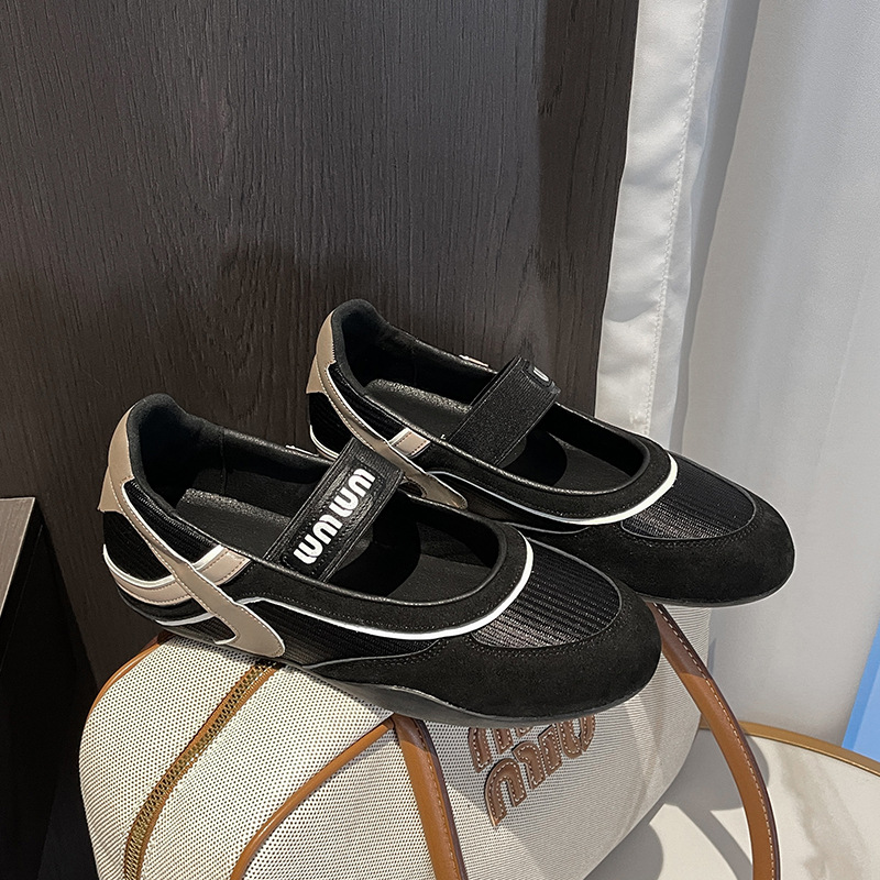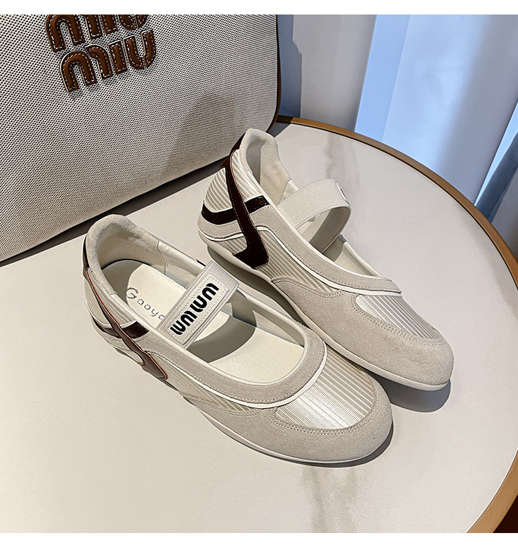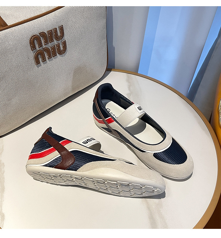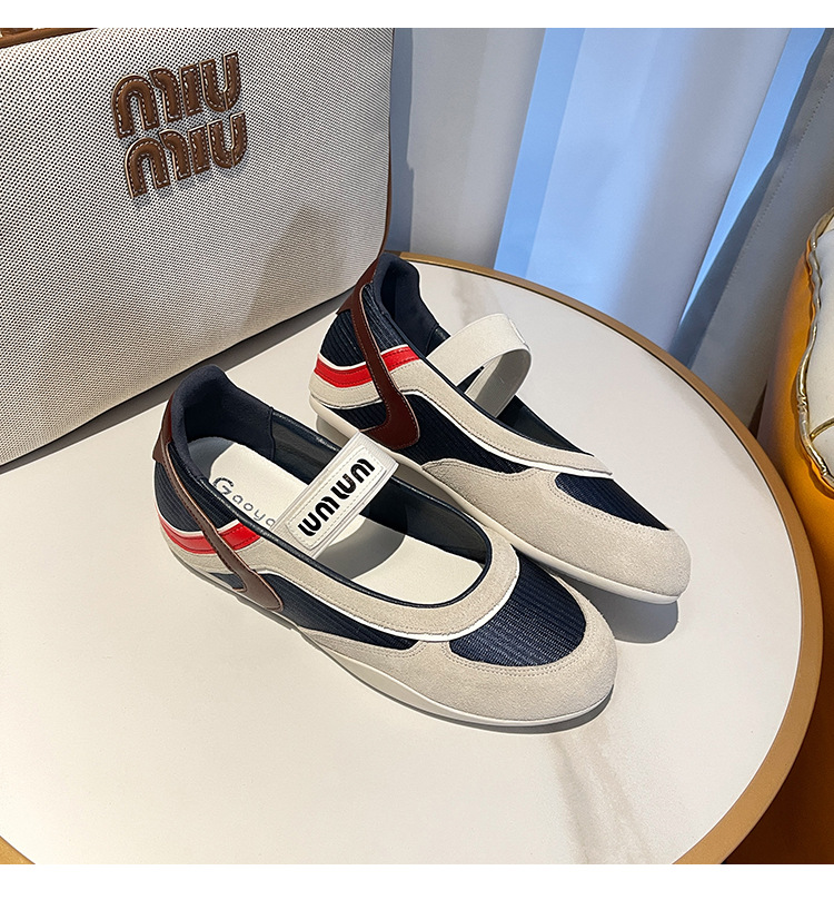 여성용 천연 가죽 메쉬 배색 플랫 슈즈 2026년 신상 초봄 스타일 라운드 토 슬립온 캐주얼 메리제인 슈즈스토어 가기