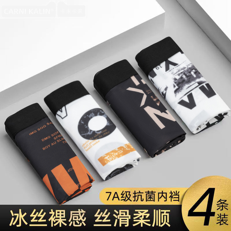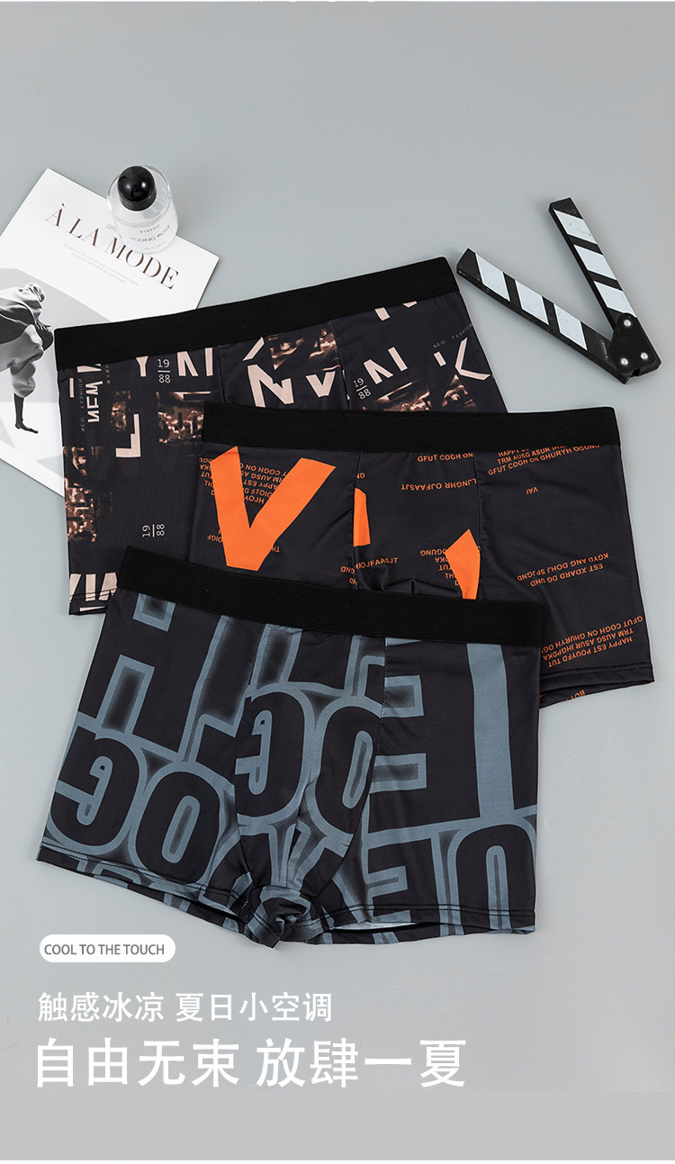 국경 간 남성 속옷 아이스 실크 스포츠 통기성 플러스 사이즈 여름 얇은 유행 미드 웨이스트 복서 반바지