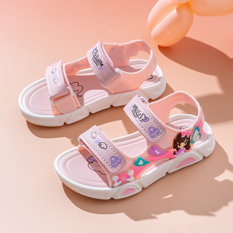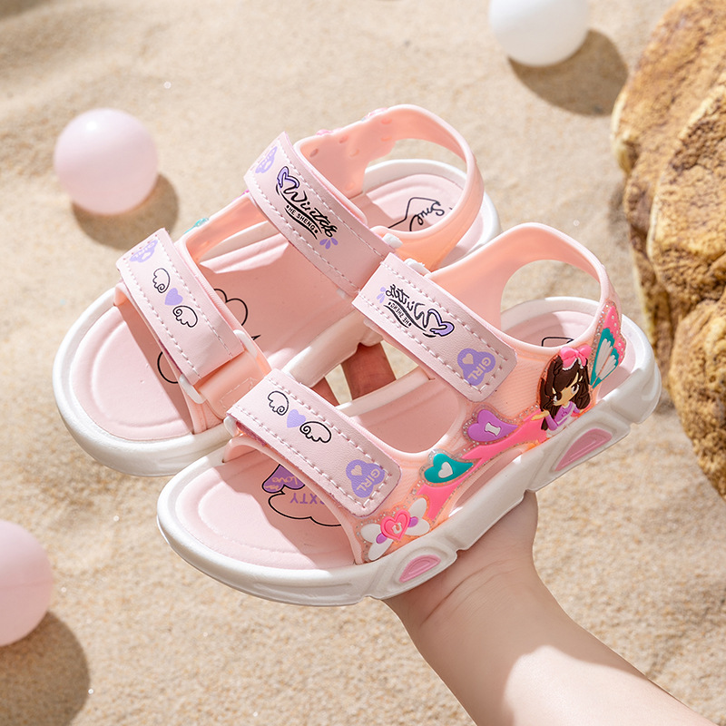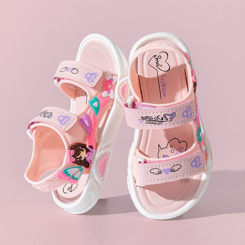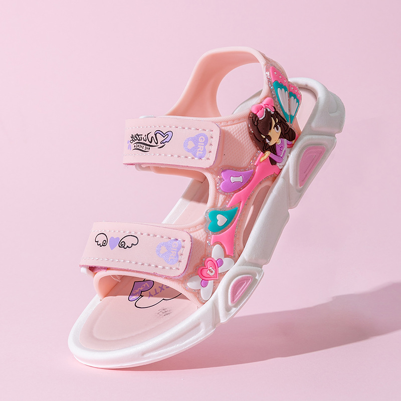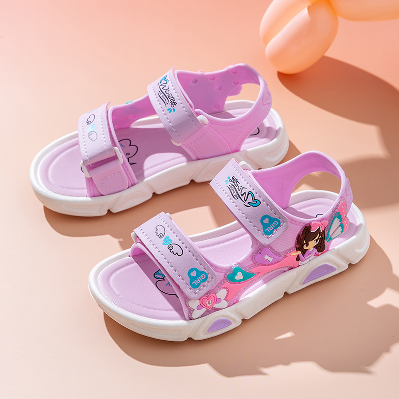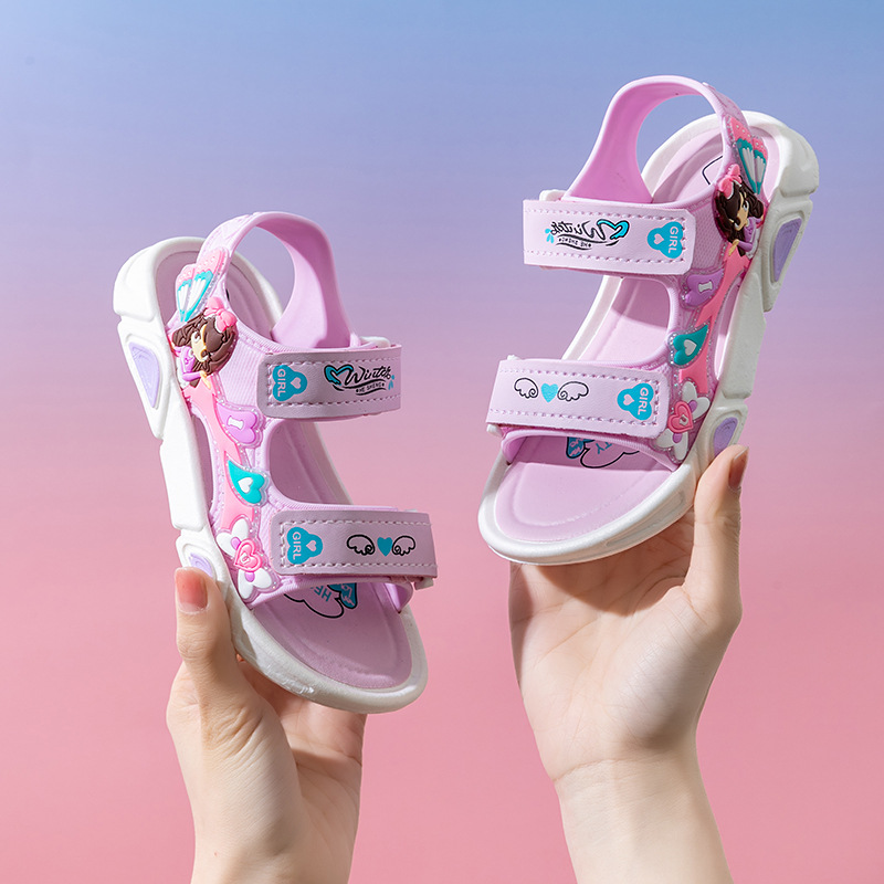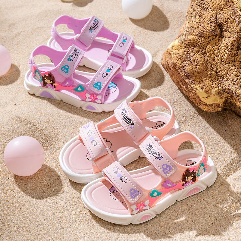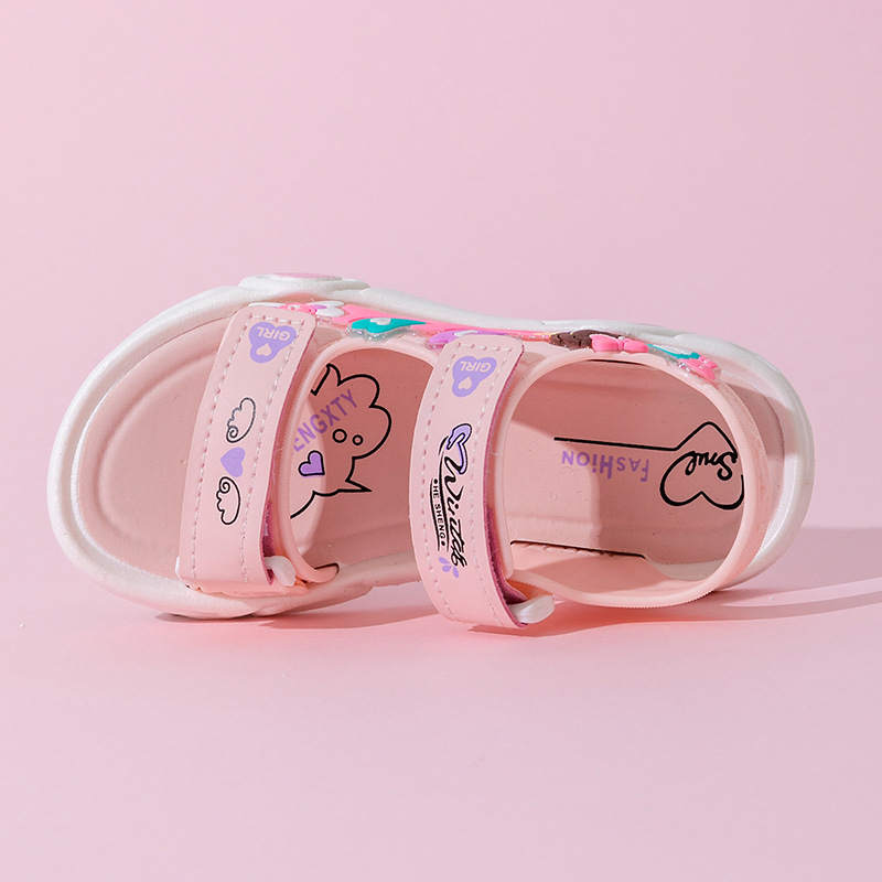 여름 귀여운 공주 스타일 어린이 샌들 사랑 공주 소프트 단독 여성 신발 간단한 비치 벨크로 샌들스토어 가기