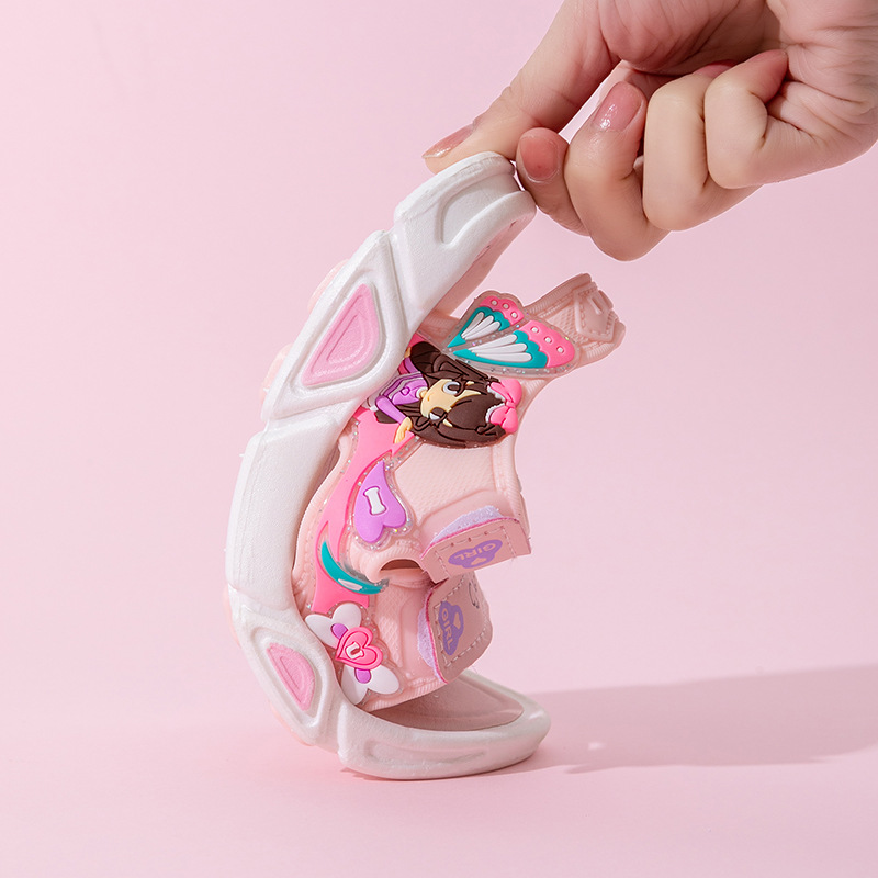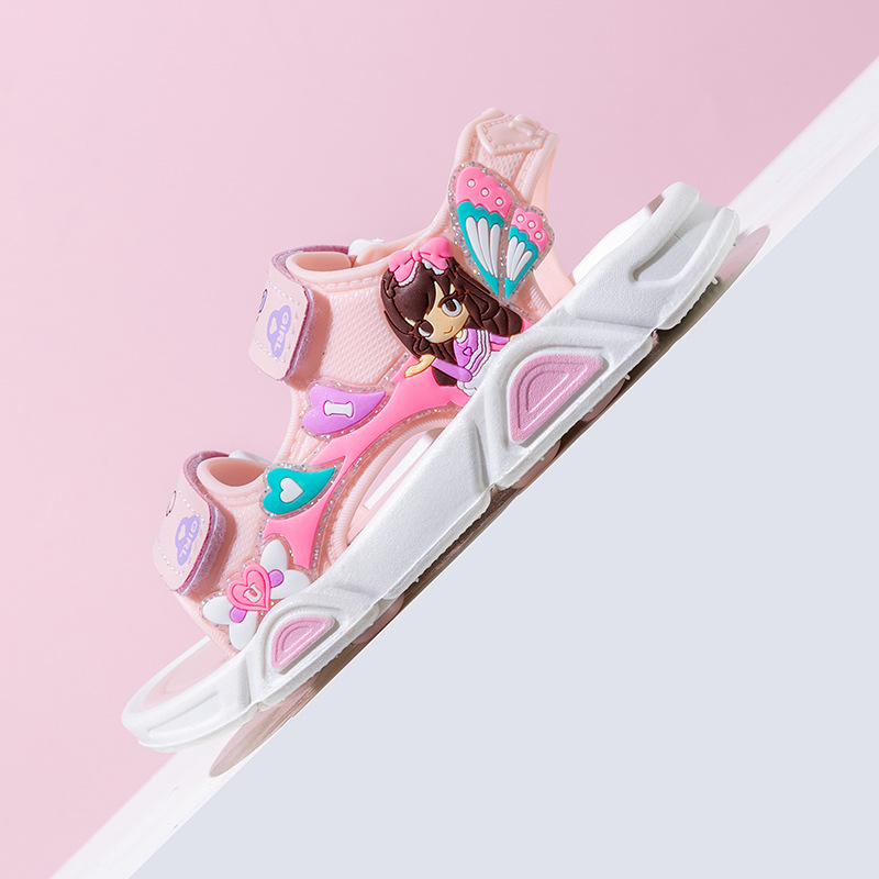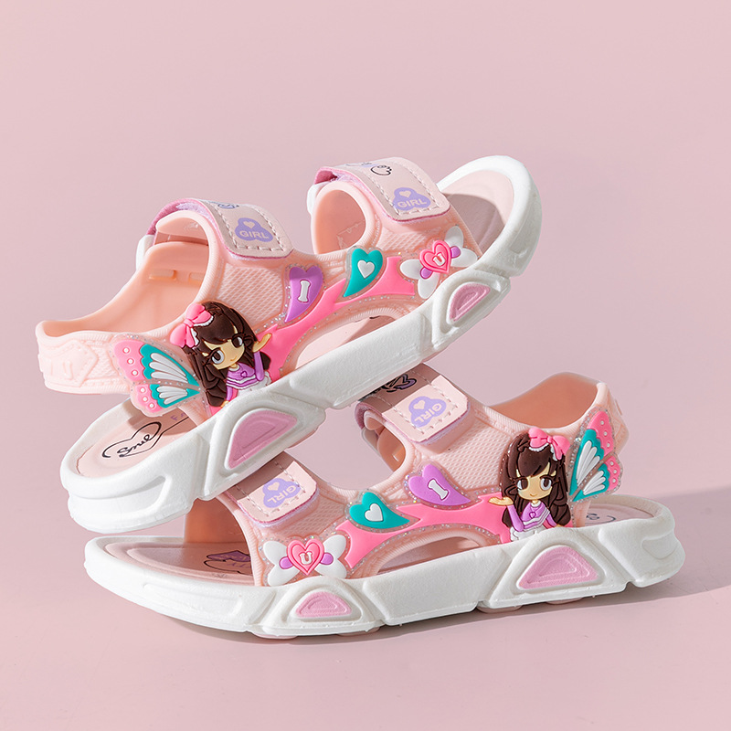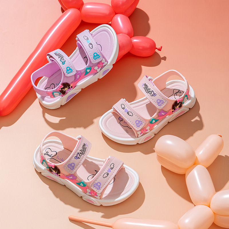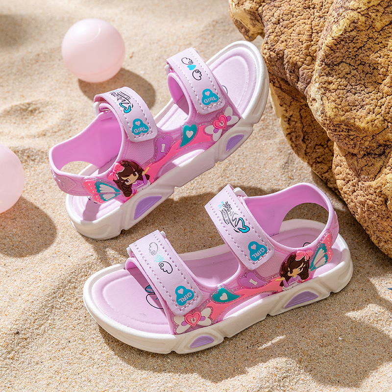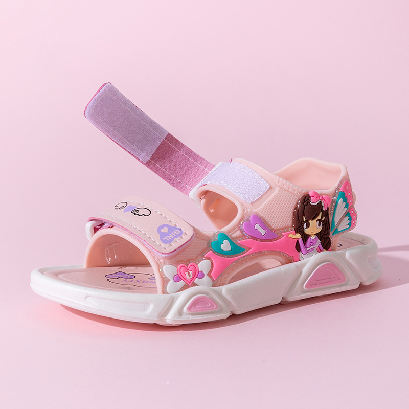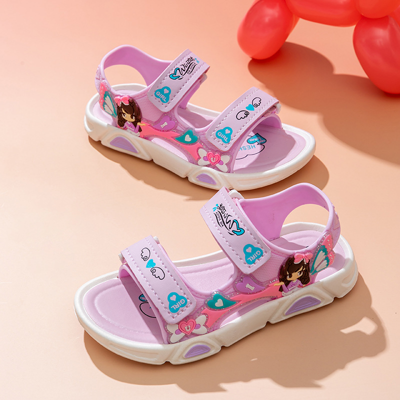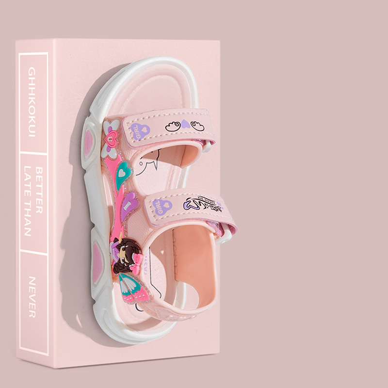 여름 귀여운 공주 스타일 어린이 샌들 사랑 공주 소프트 단독 여성 신발 간단한 비치 벨크로 샌들스토어 가기