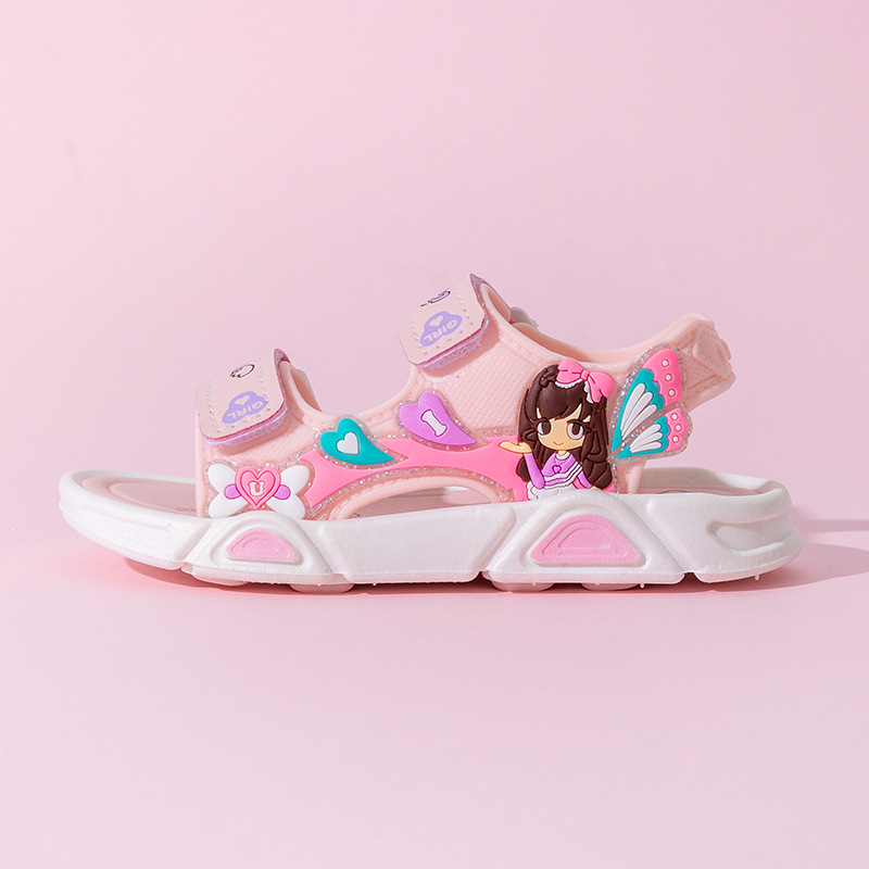 여름 귀여운 공주 스타일 어린이 샌들 사랑 공주 소프트 단독 여성 신발 간단한 비치 벨크로 샌들
