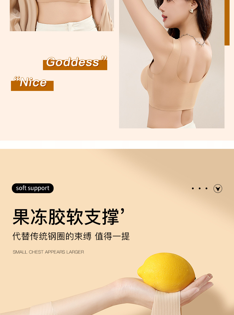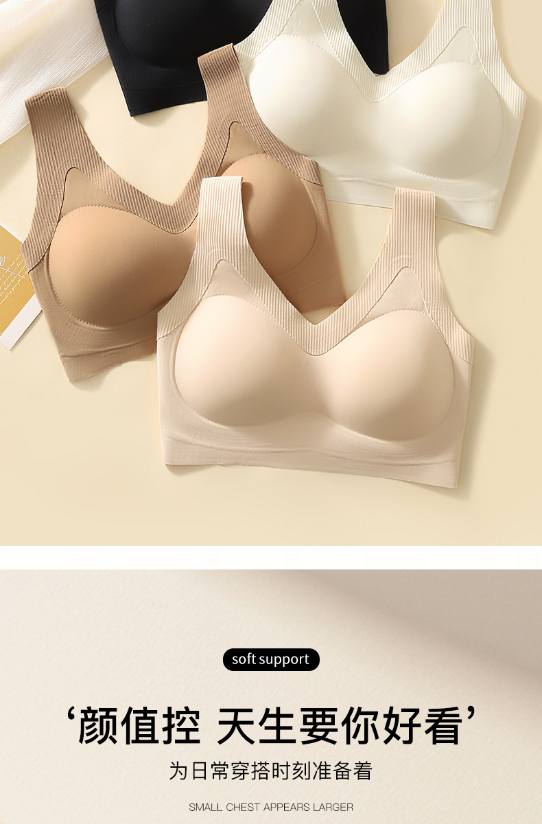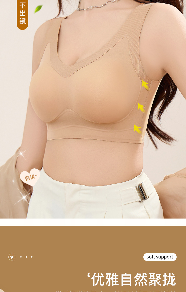 작은 가슴을 모아서 더 크게 보이게 하는 와이어 프리 브라, 노출 방지, 아름다운 등, 고정 컵, 얇고 흔적이 없는 여성용 속옷, 새로운 여름 스타일스토어 가기