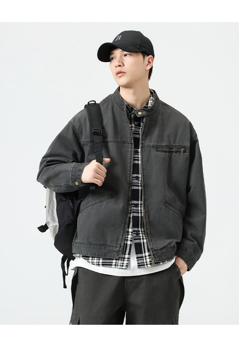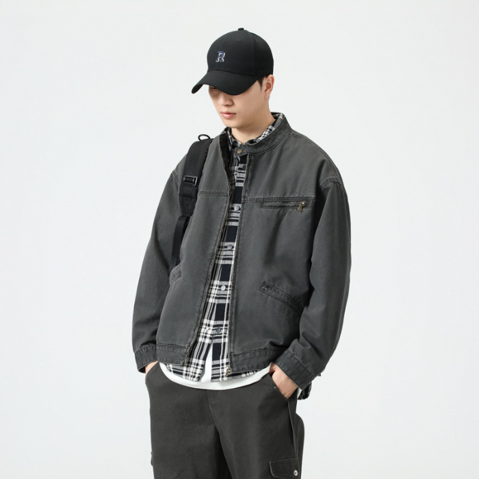 미국 스타일 하이 스트리트 데님 재킷 남성용 2025 신상 봄 가을 트렌디 브랜드 레트로 루즈핏 바이커 워크웨어 재킷스토어 가기