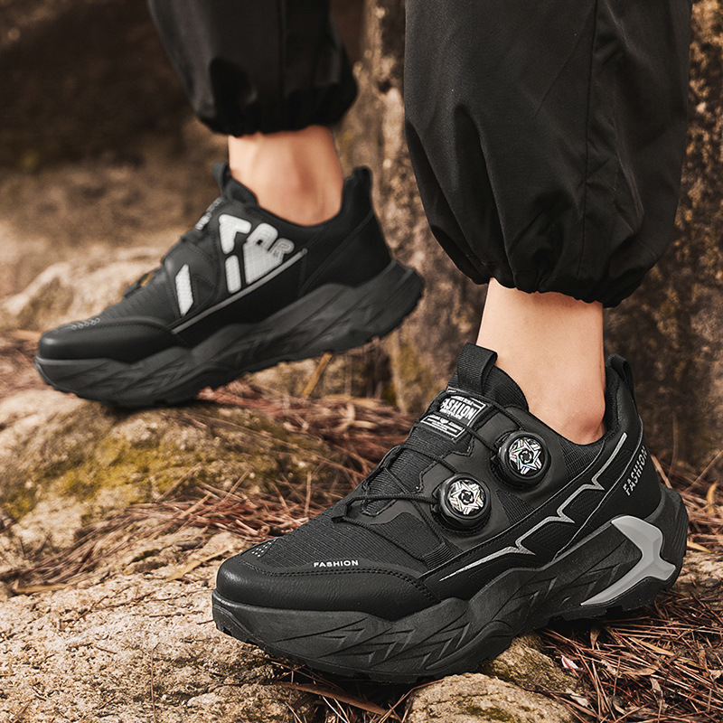 남성 신발 봄 두꺼운 밑창 미끄럼 방지 회전 버튼 신발 청소년 여행 레저 야외 등산 달리기 스포츠 신발