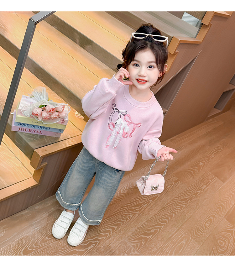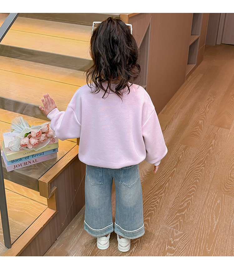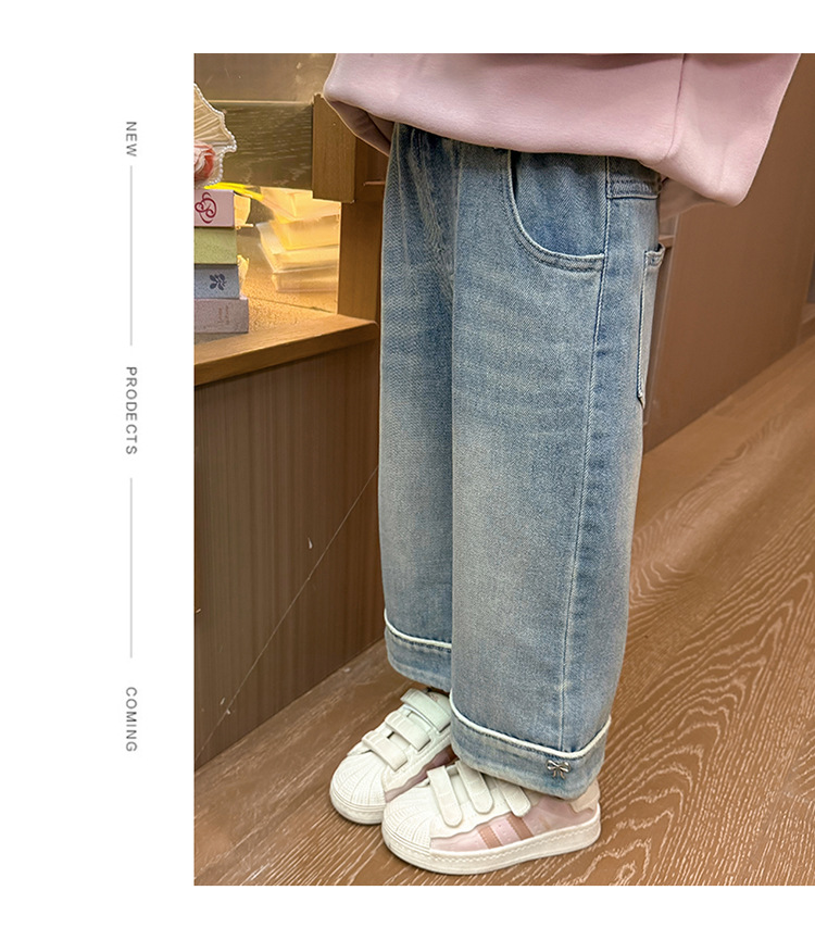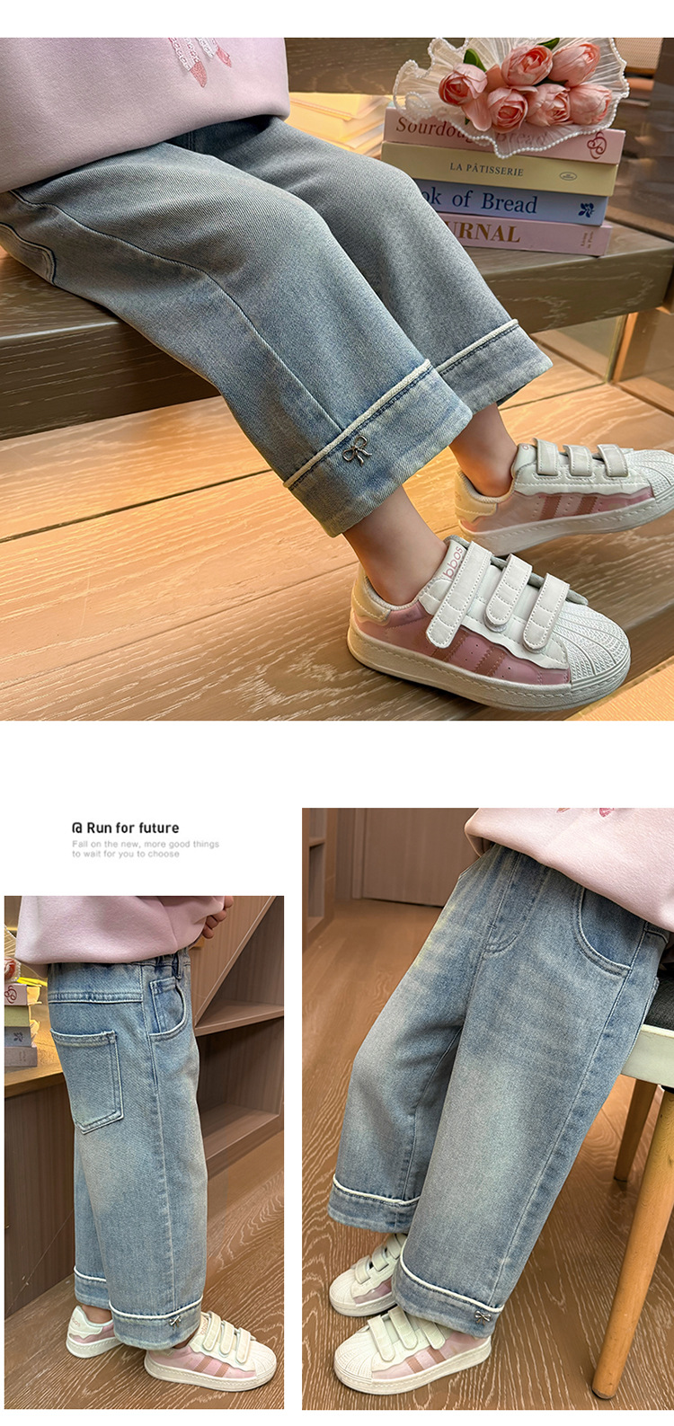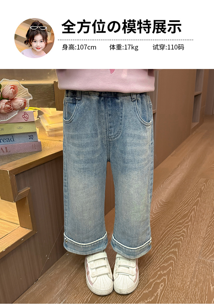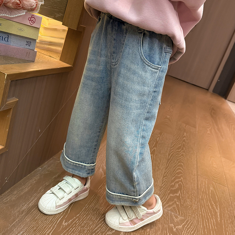 소녀 로프 네일 버클 스트레이트 청바지 2025 새로운 스타일 어린 소녀의 느슨한 스트레이트 바지스토어 가기
