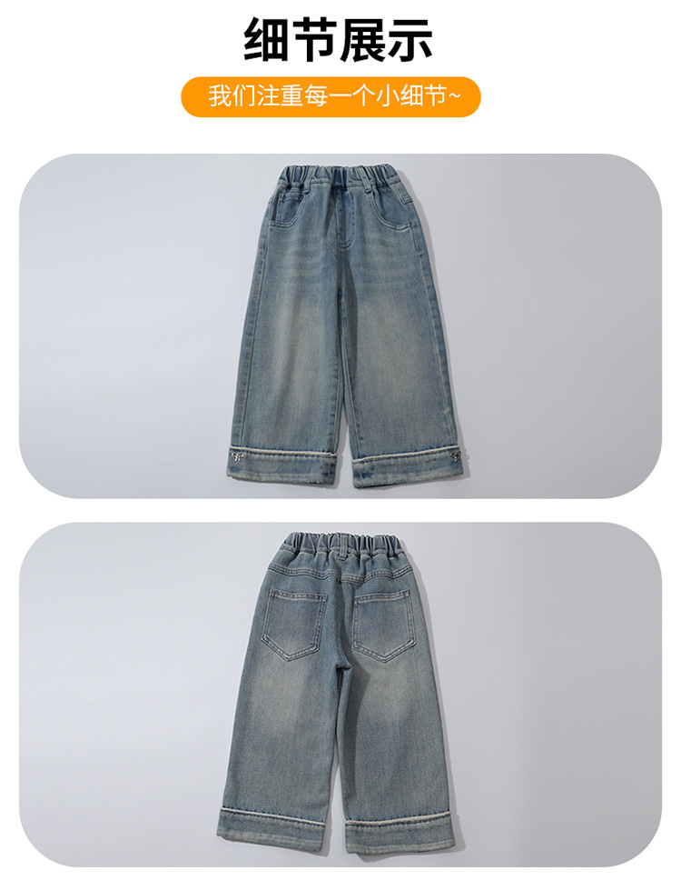 소녀 로프 네일 버클 스트레이트 청바지 2025 새로운 스타일 어린 소녀의 느슨한 스트레이트 바지