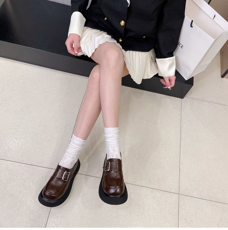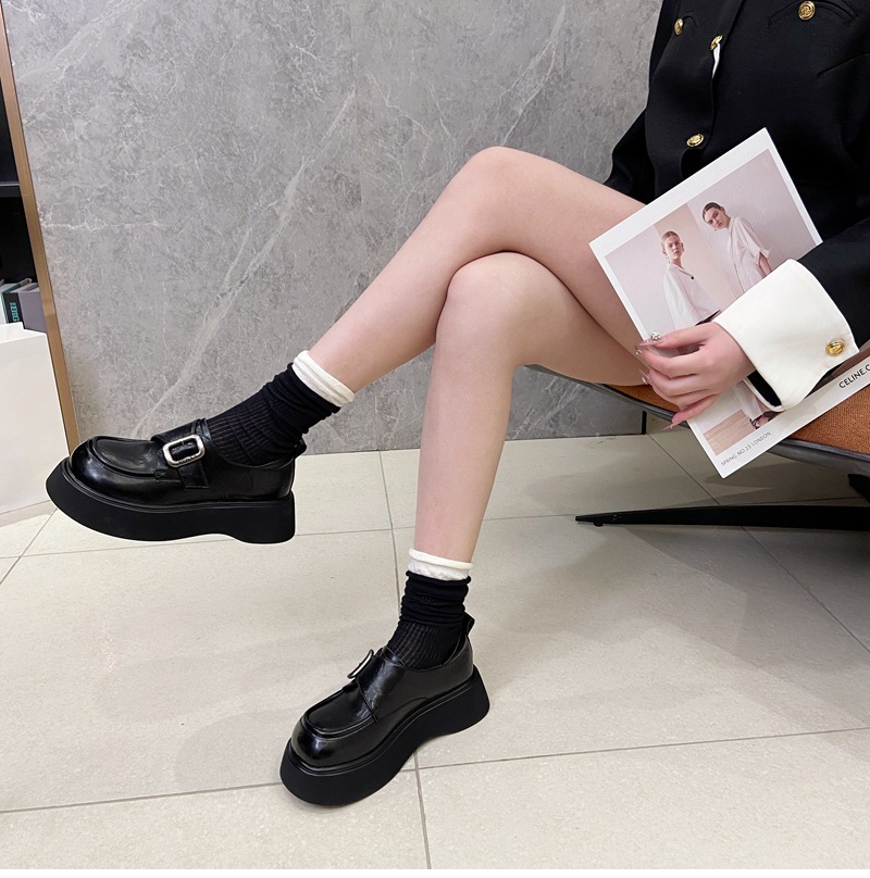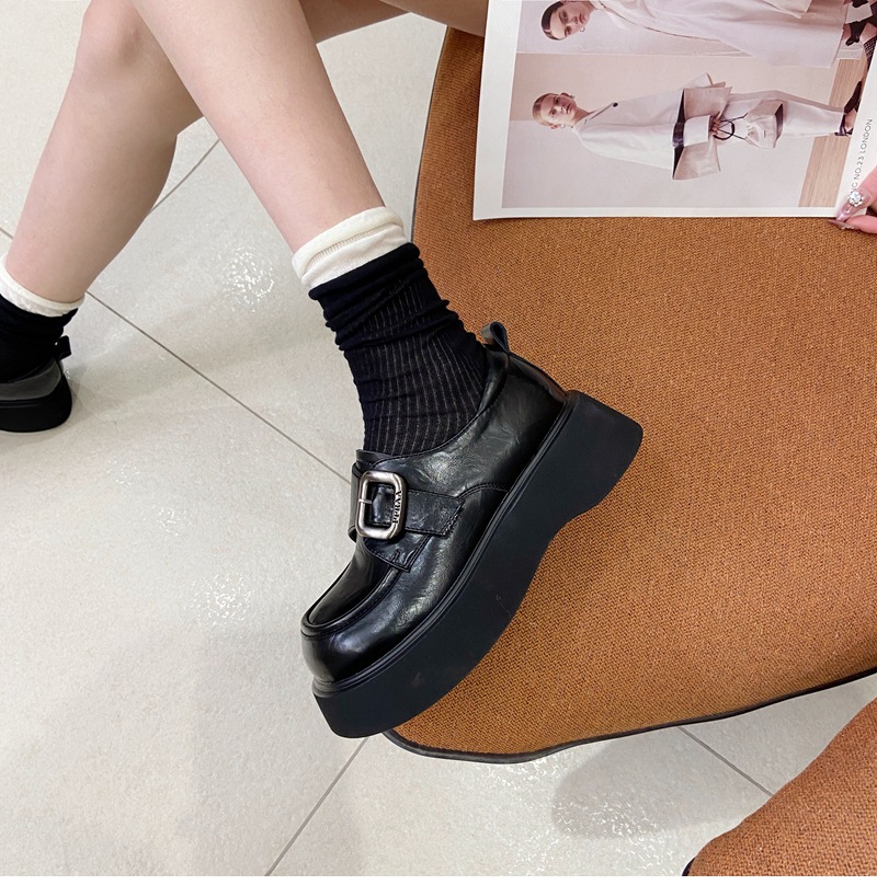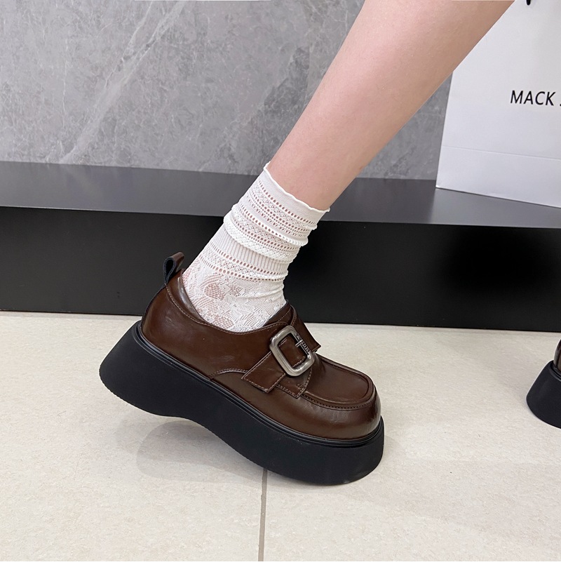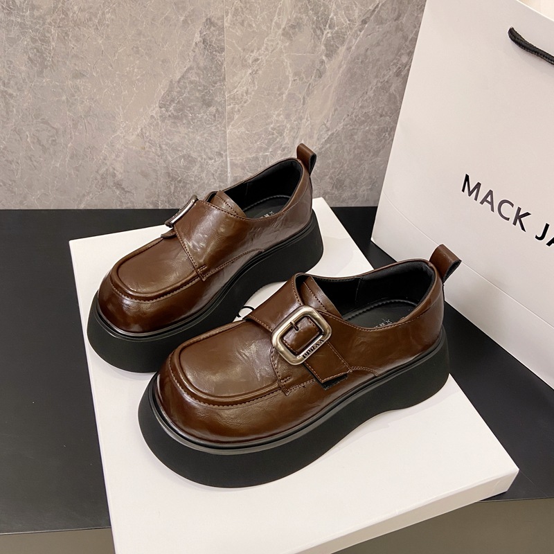 두꺼운 밑창 로퍼 증가 여성 2025 봄 새로운 영국 스타일의 작은 가죽 신발 둥근 발가락 부드러운 밑창 편안한 슬립 온 신발스토어 가기