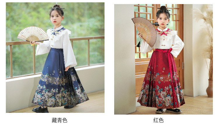 소녀 말 얼굴 치마 2024 새로운 봄과 여름 세트 국가 스타일 하이 엔드 한푸 어린이 가을 원피스 큰 어린이 탕 세트