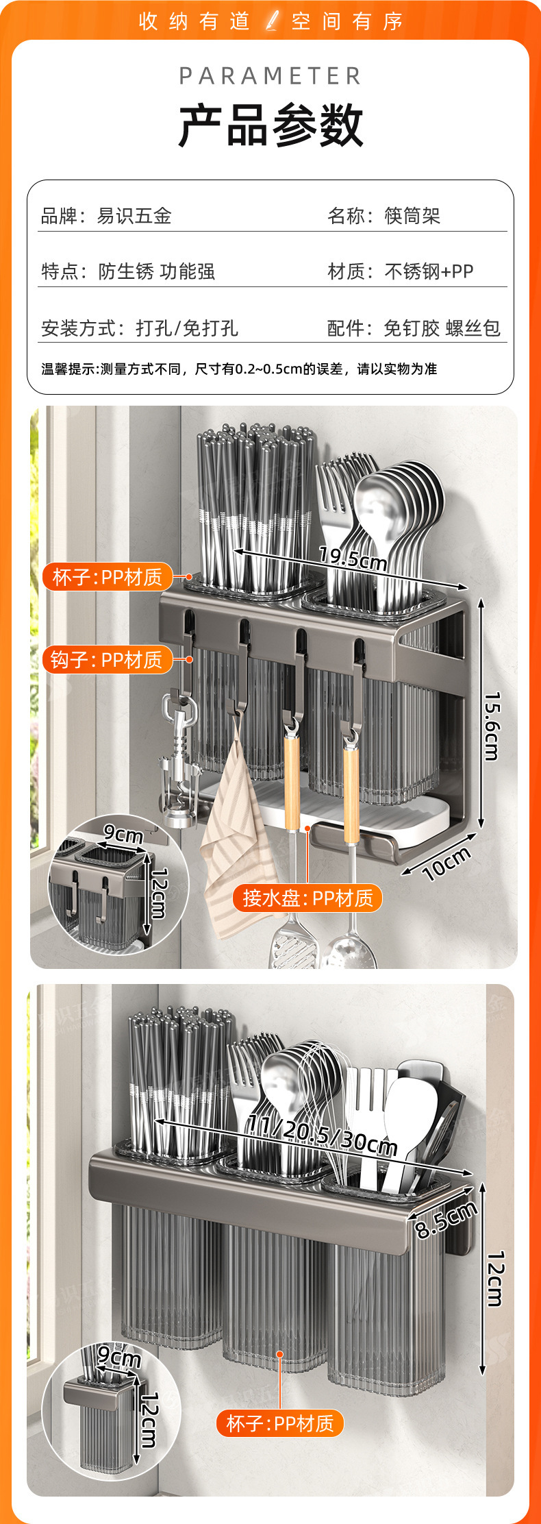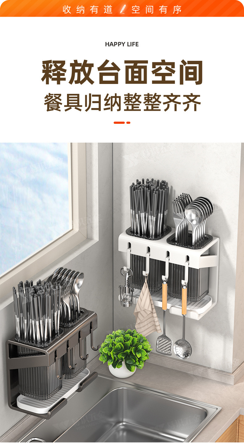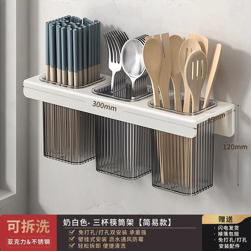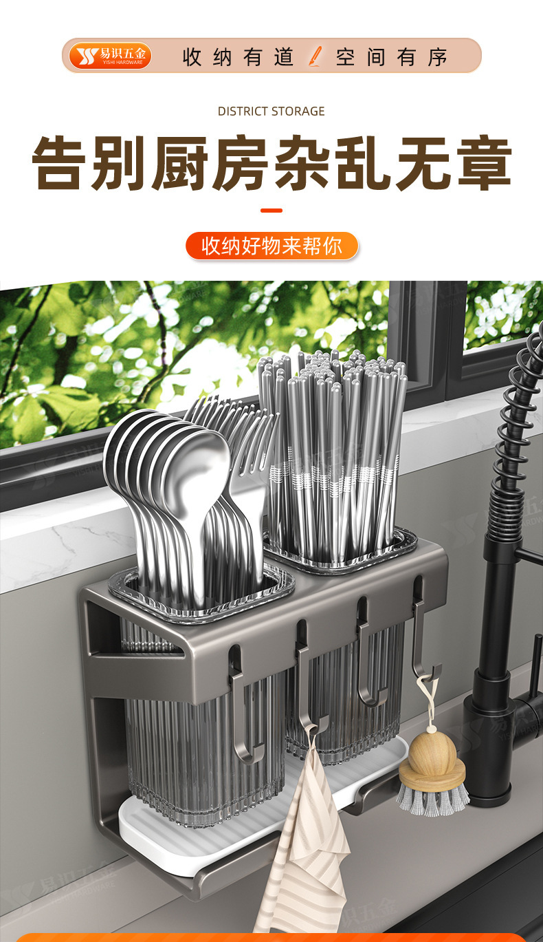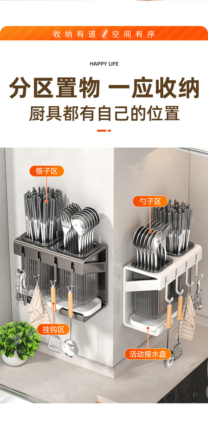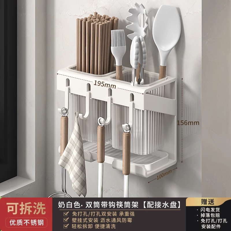 소스 공장 주방 가정용 젓가락 케이지 바구니 배수 물 펀치 프리 젓가락 홀더 벽 조리대 숟가락 저장 상자스토어 가기
