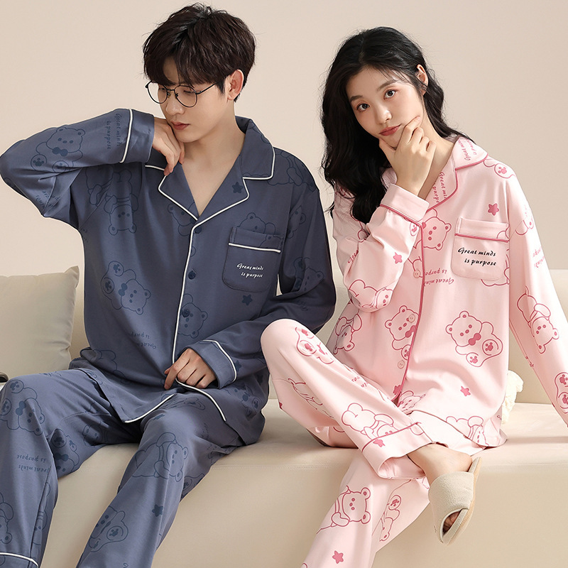 새로운 봄 가을 커플 잠옷 한국 스타일 남녀 홈 캐주얼 긴 소매 카디건 홈 의류 세트 외복스토어 가기