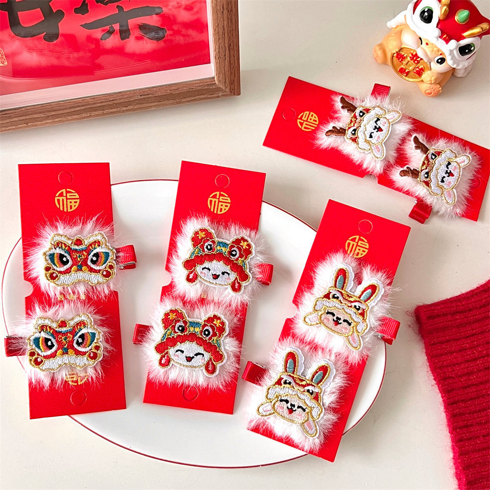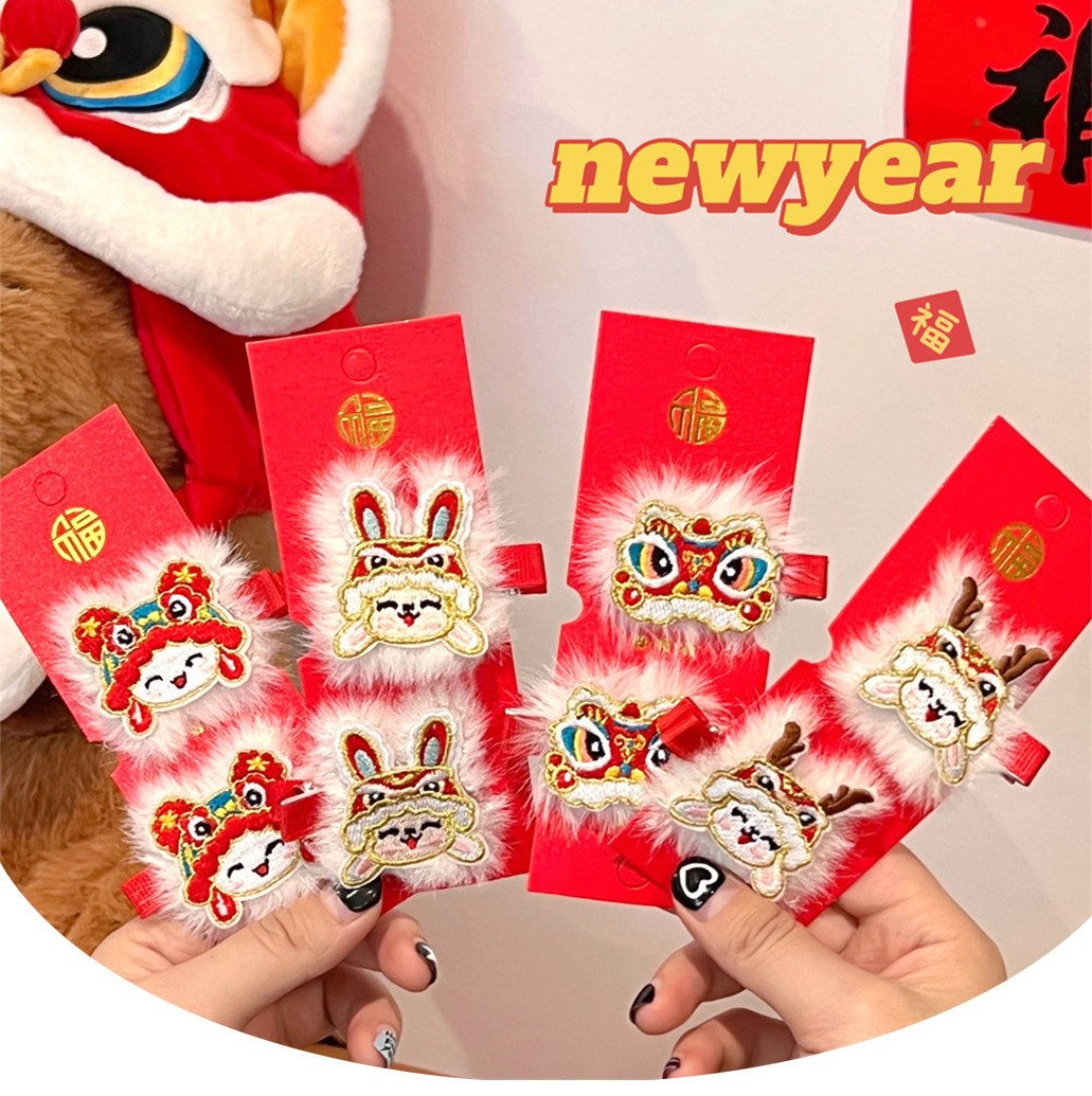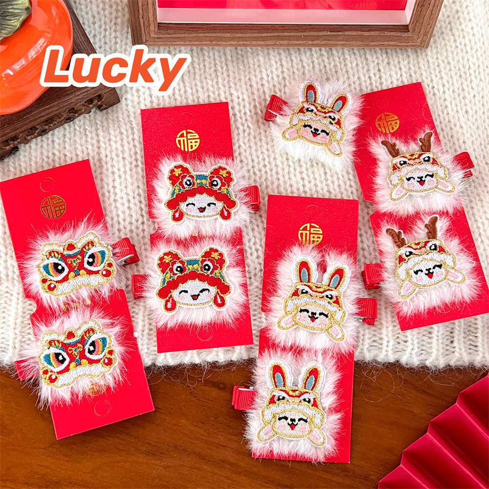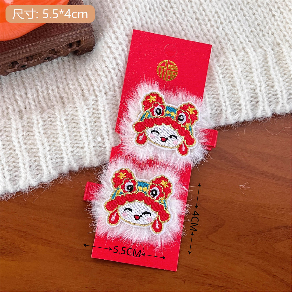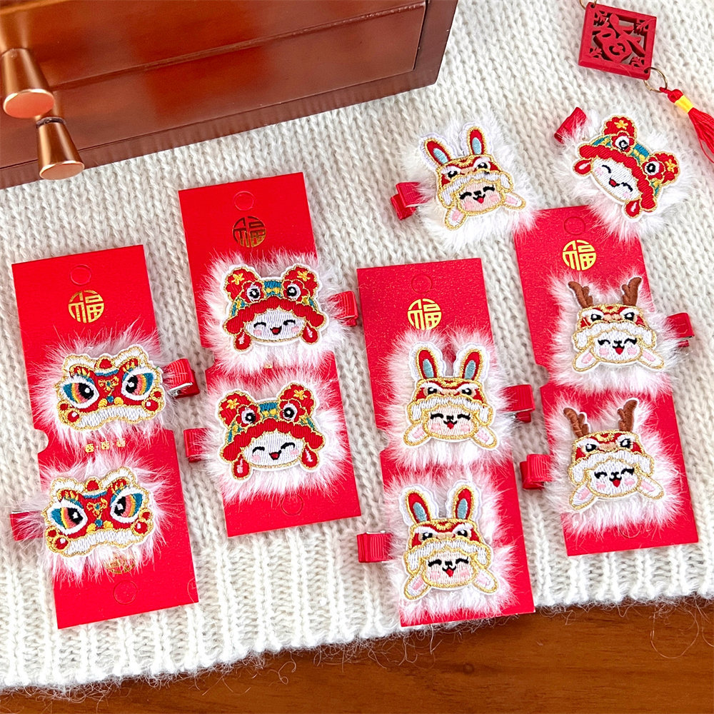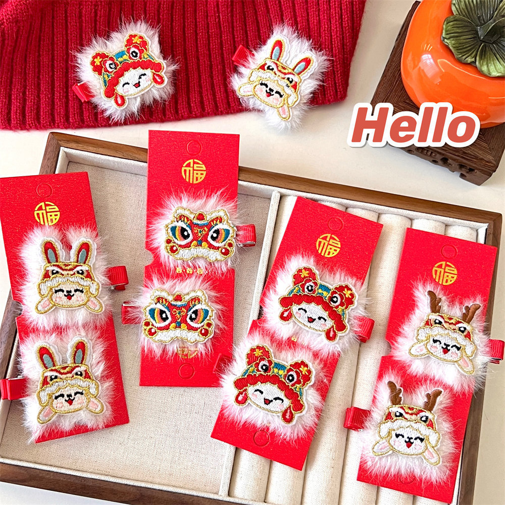 中国风新年刺绣红色发夹可爱少女侧边碎发刘海夹过年喜庆发卡头饰스토어 가기