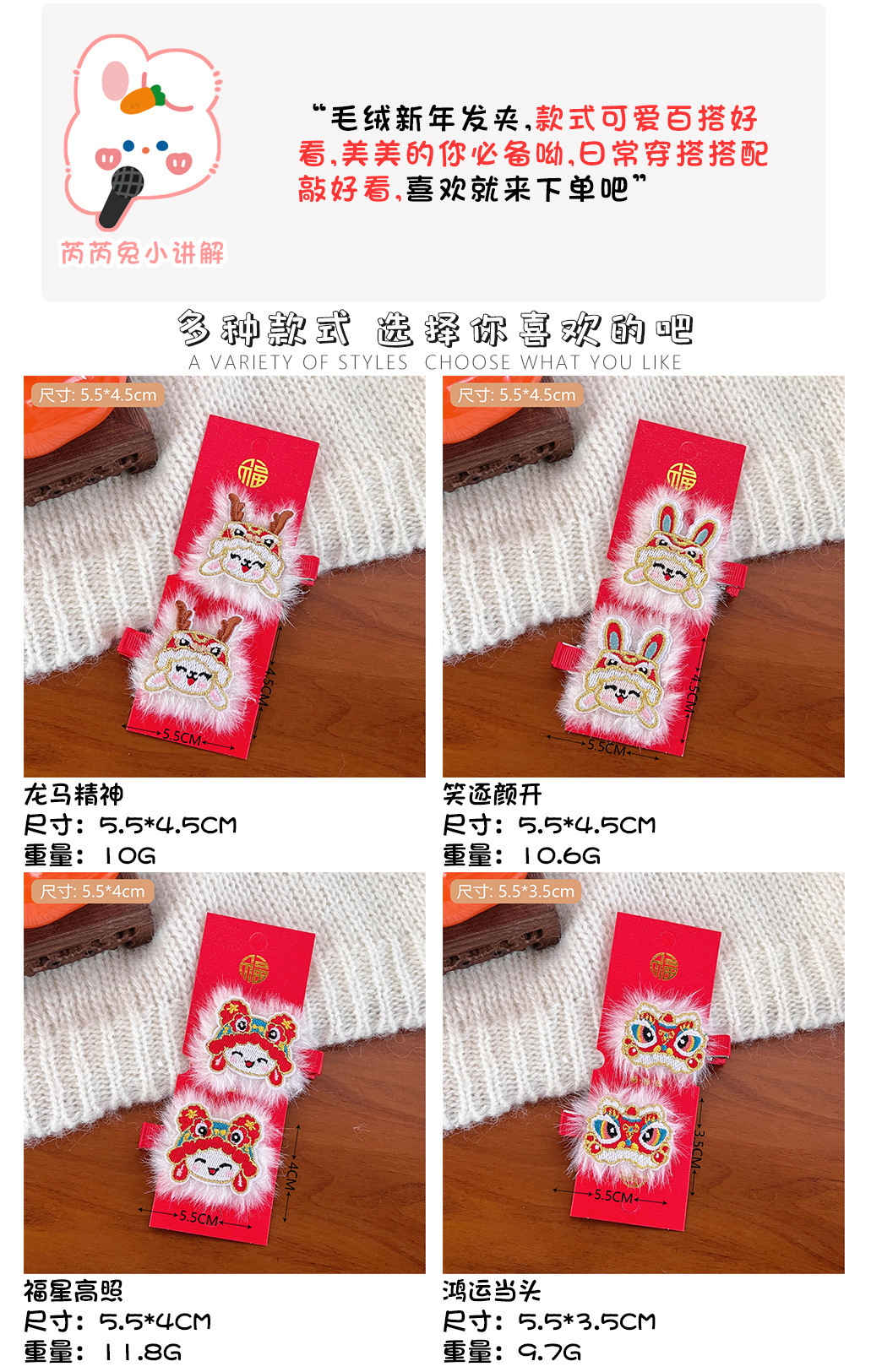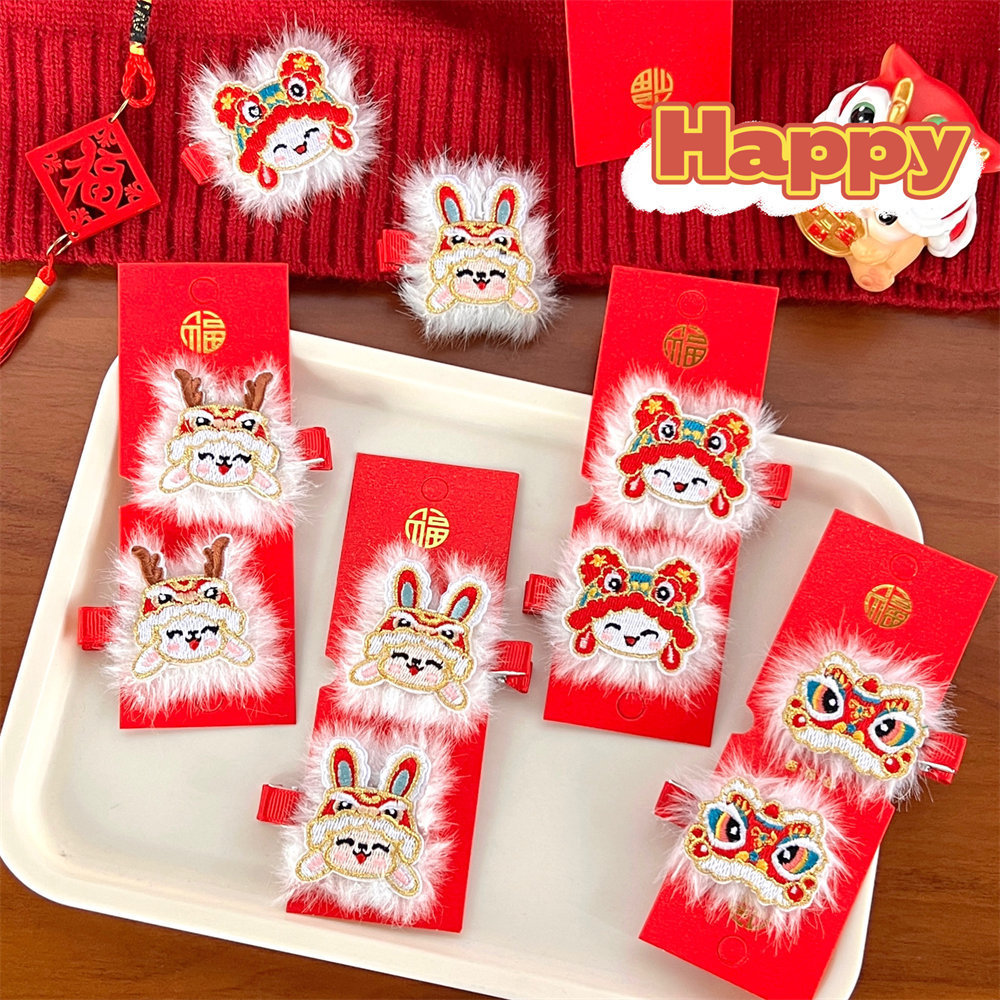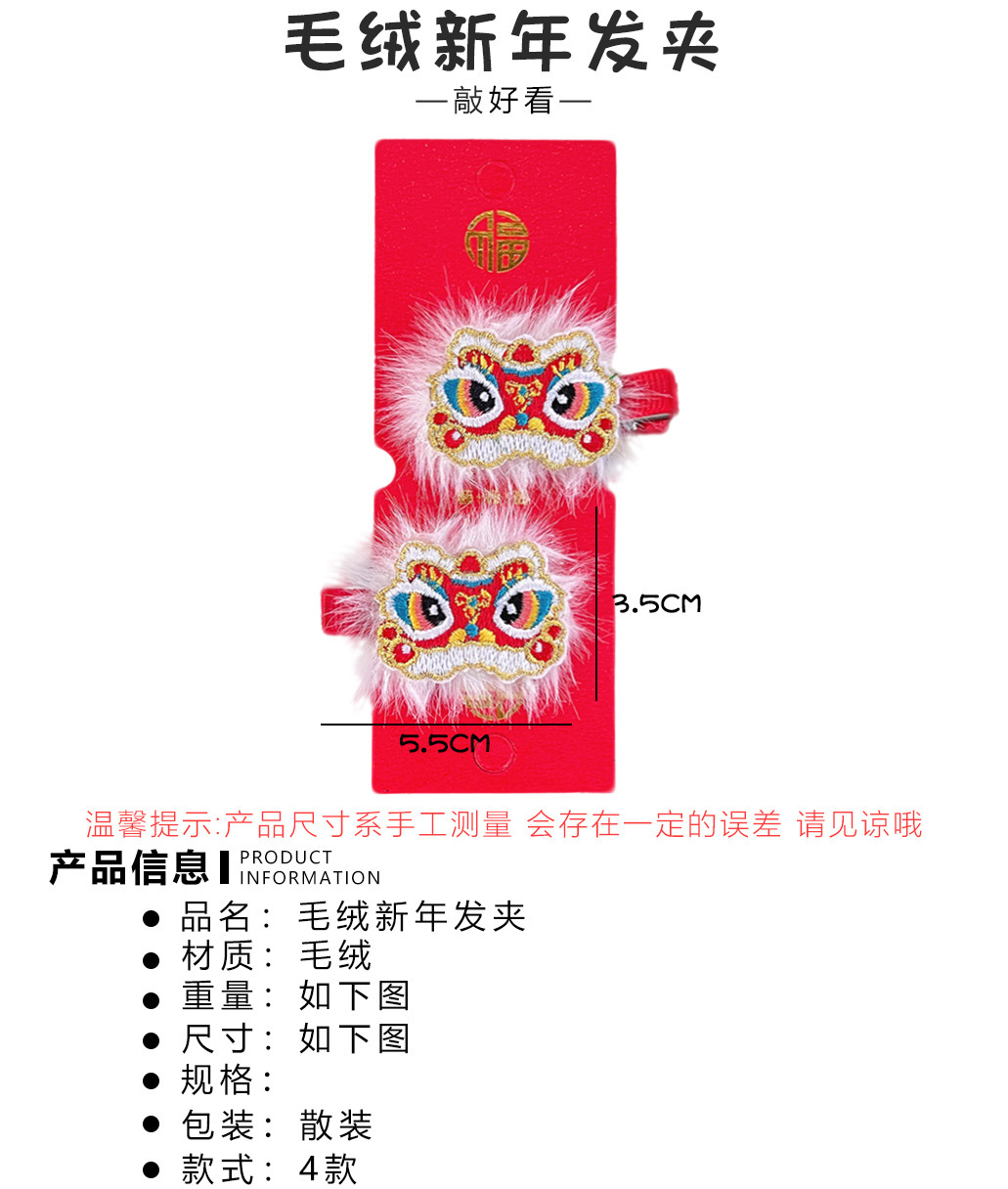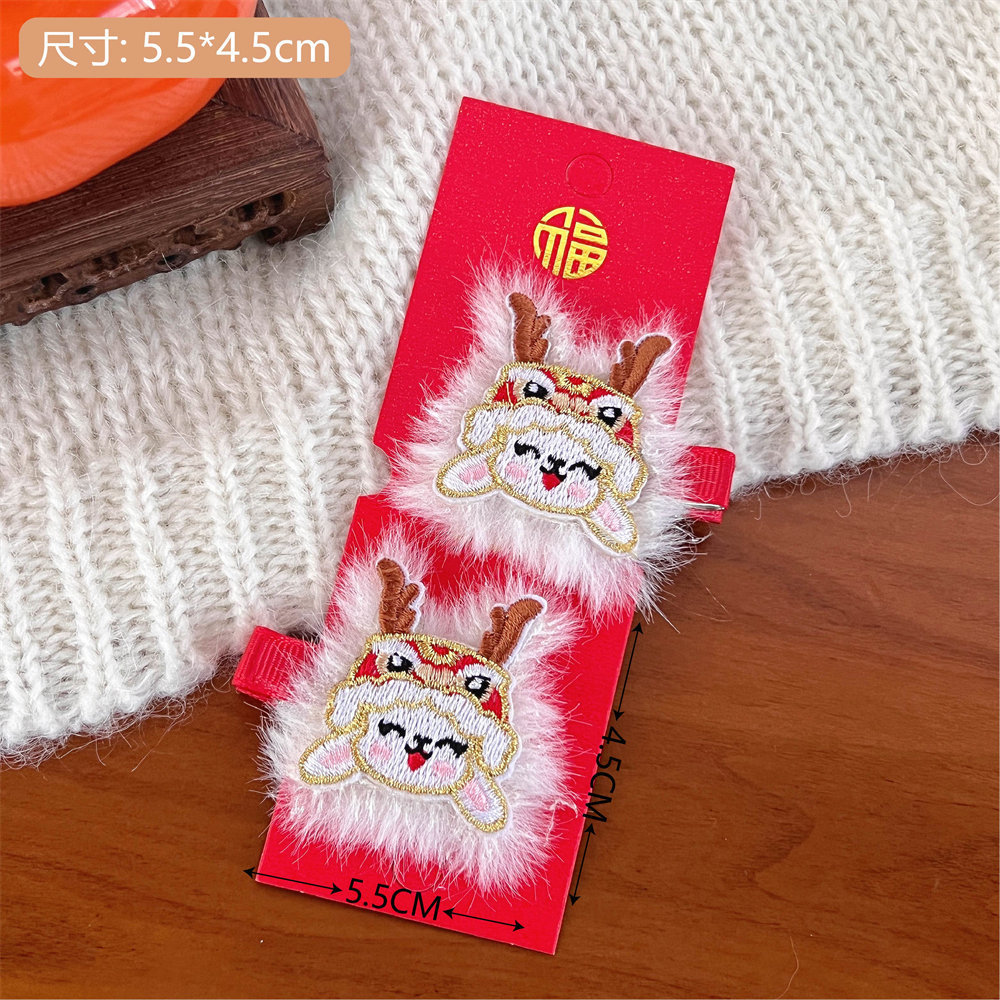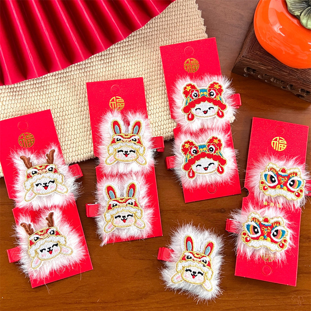 中国风新年刺绣红色发夹可爱少女侧边碎发刘海夹过年喜庆发卡头饰스토어 가기