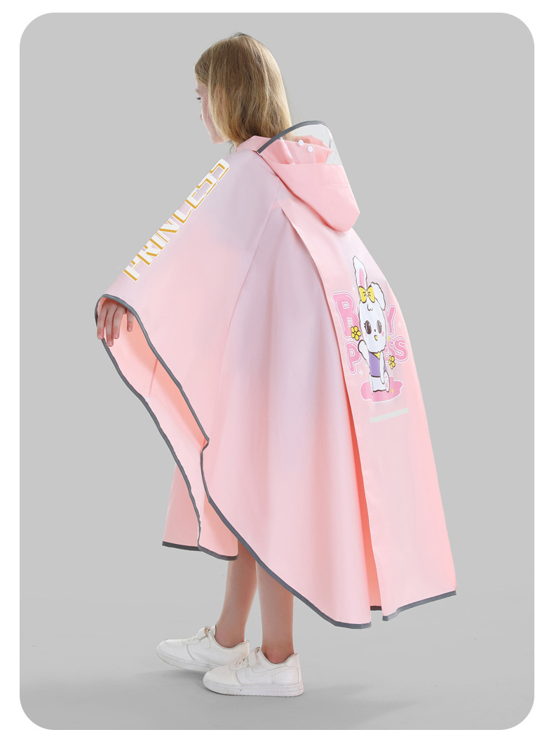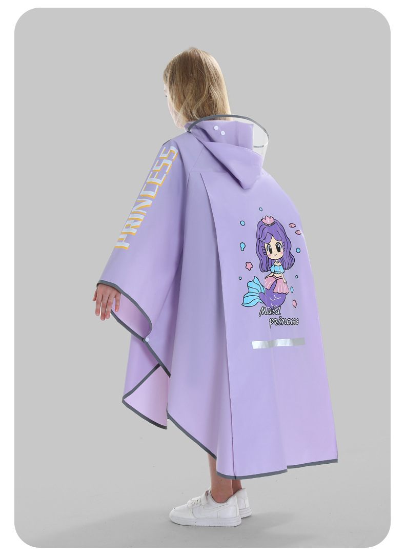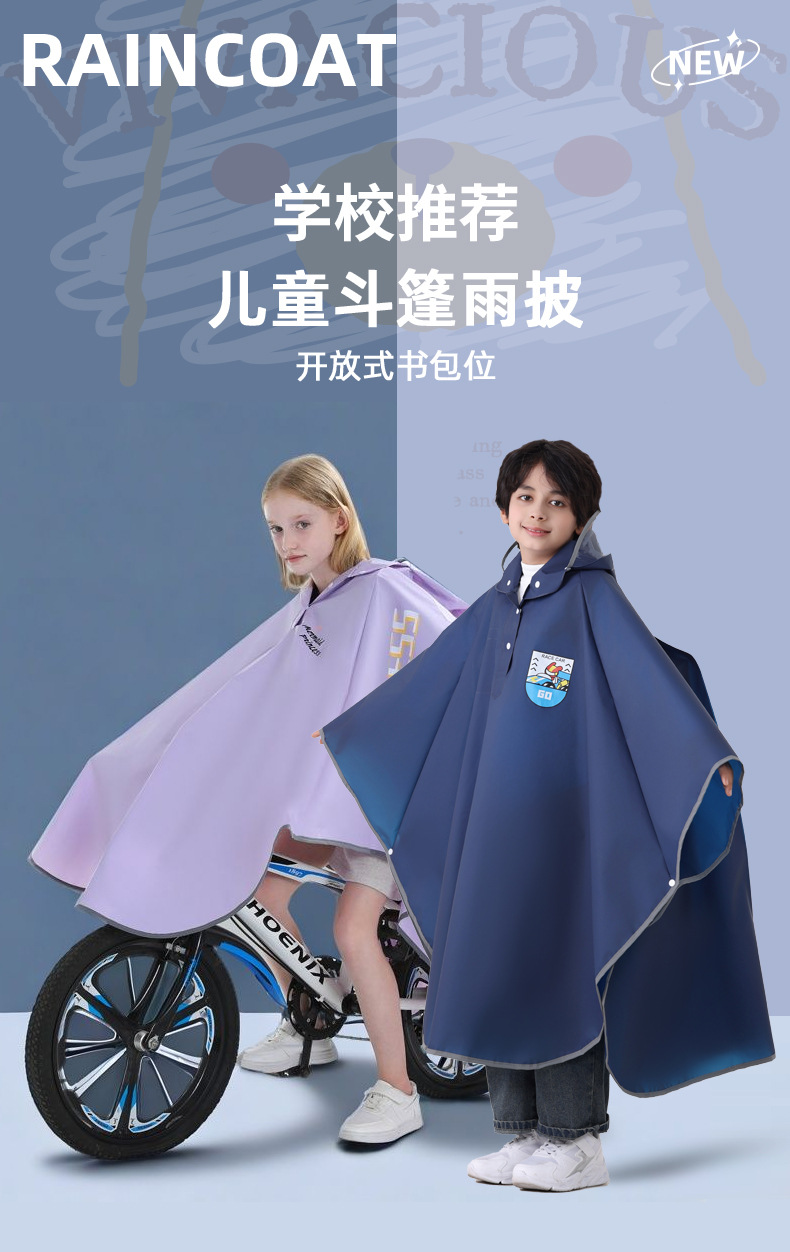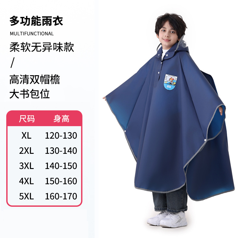 학교 가방 판초가있는 어린이 비옷 남녀 어린이 중학교 및 초등학생 폭풍우 방지 롱 라이딩 더블 브림 판초