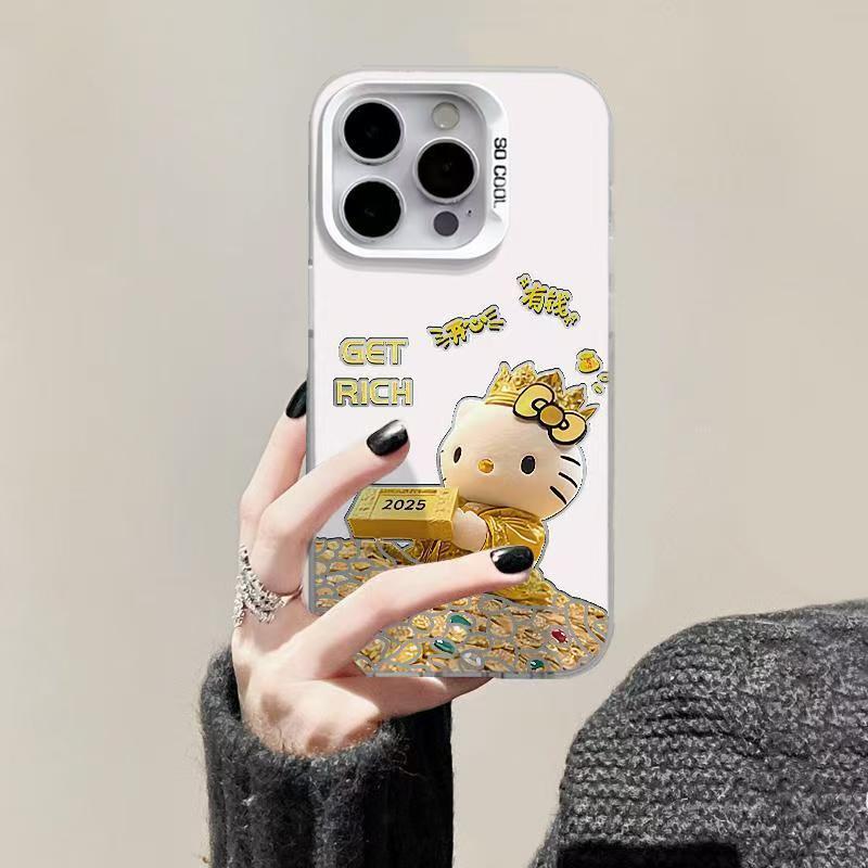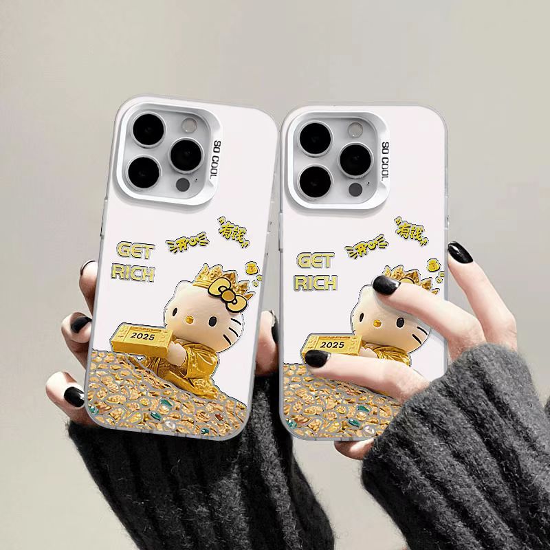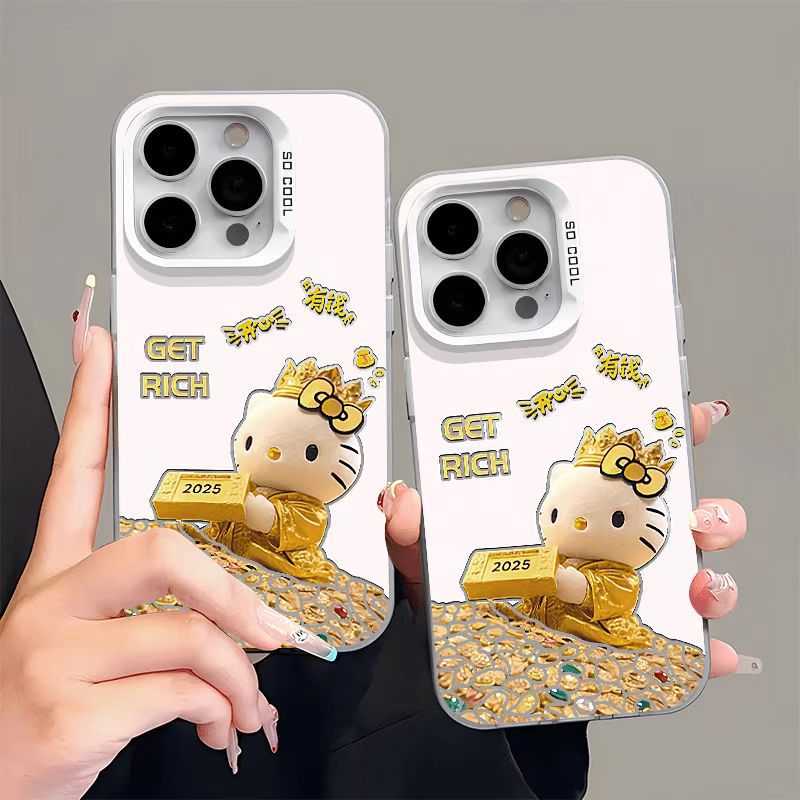 골드 헬로 키티 컬러 실버 케이스 애플 16/15/14pro 전화 케이스 15 promax13/12 프리미엄