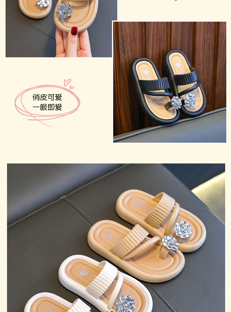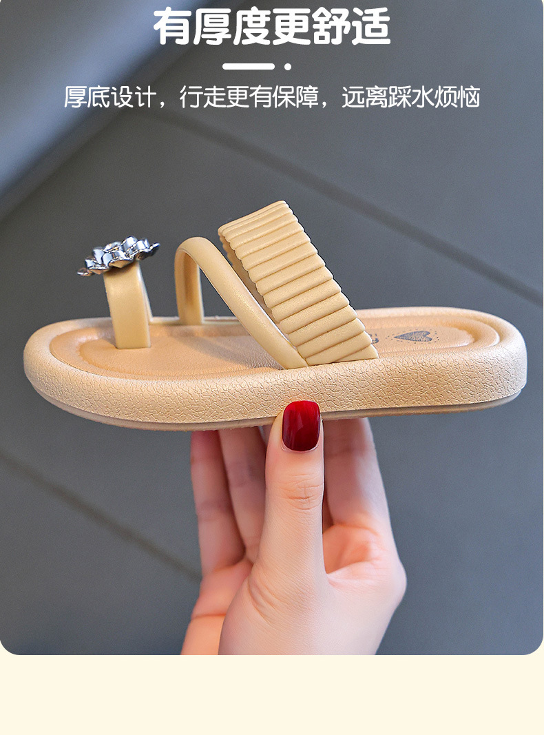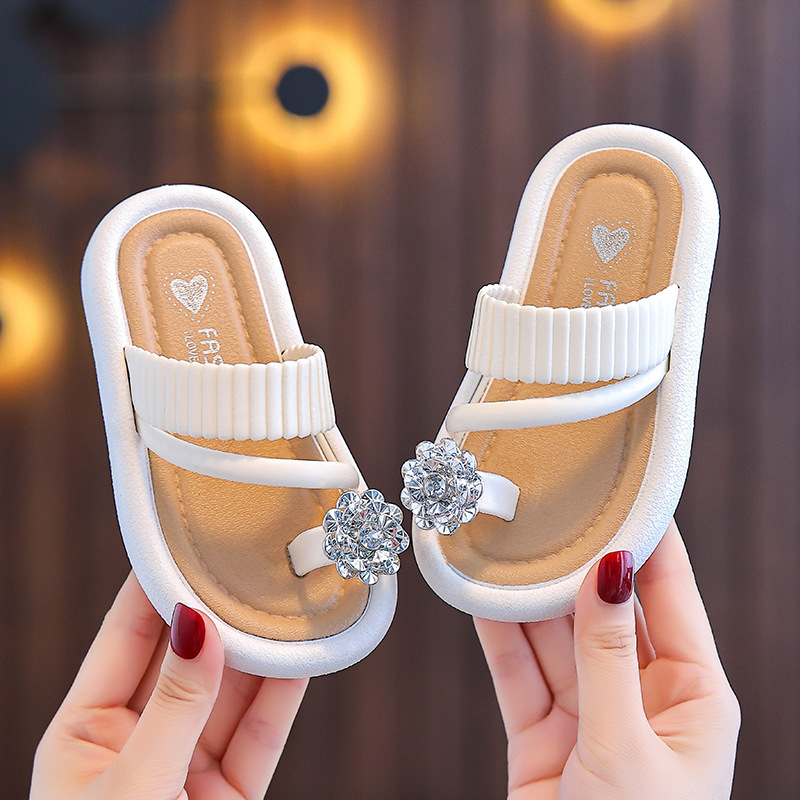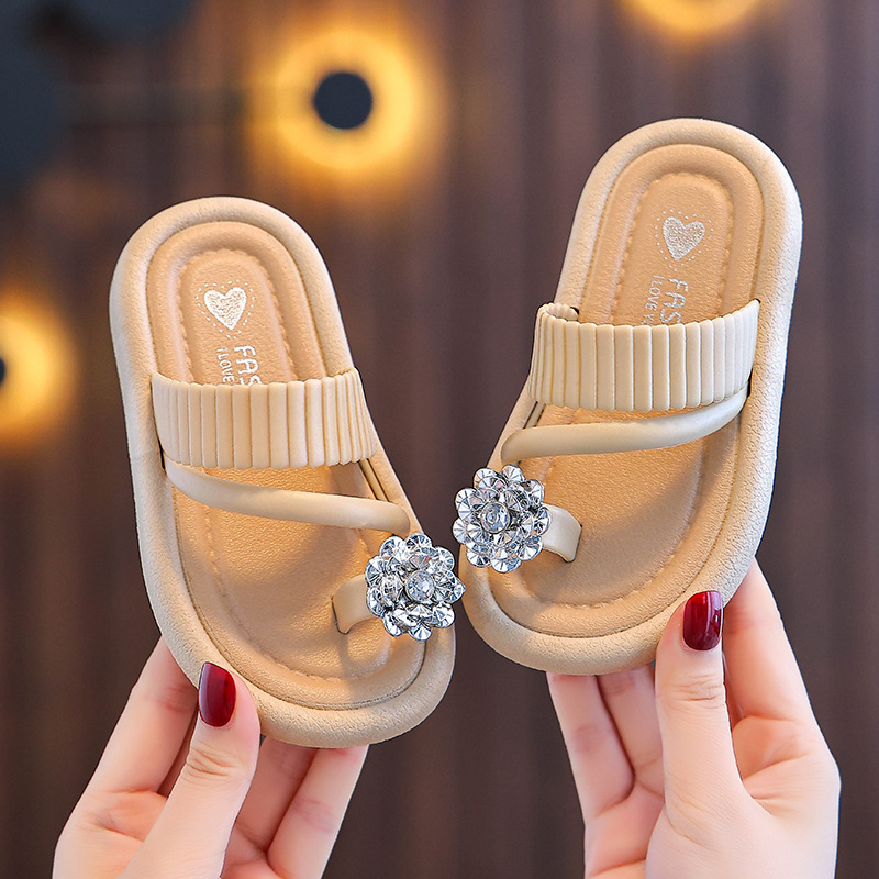 어린이 야외 부모-자식 다목적 슬리퍼 2025 여름 새로운 스타일 중대형 어린이 꽃 라인 석 플랫 슬리퍼