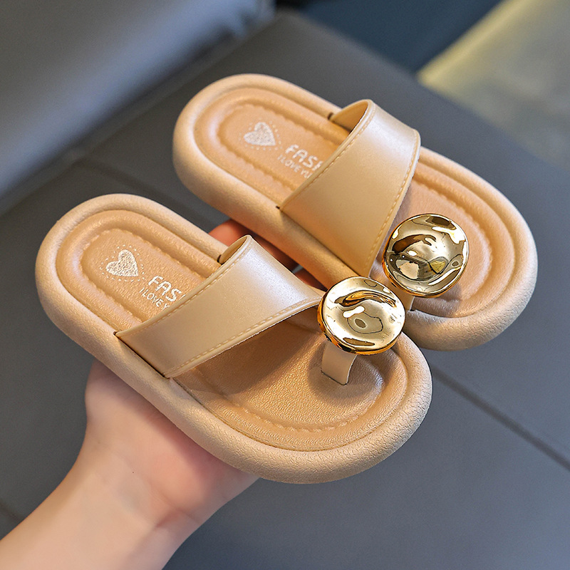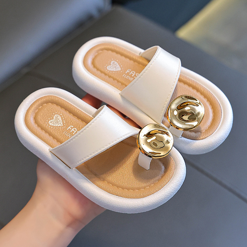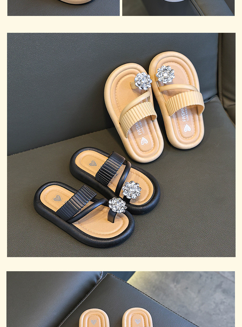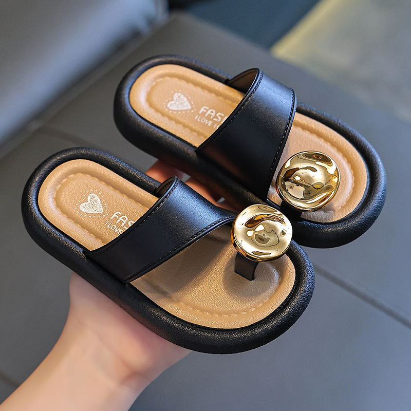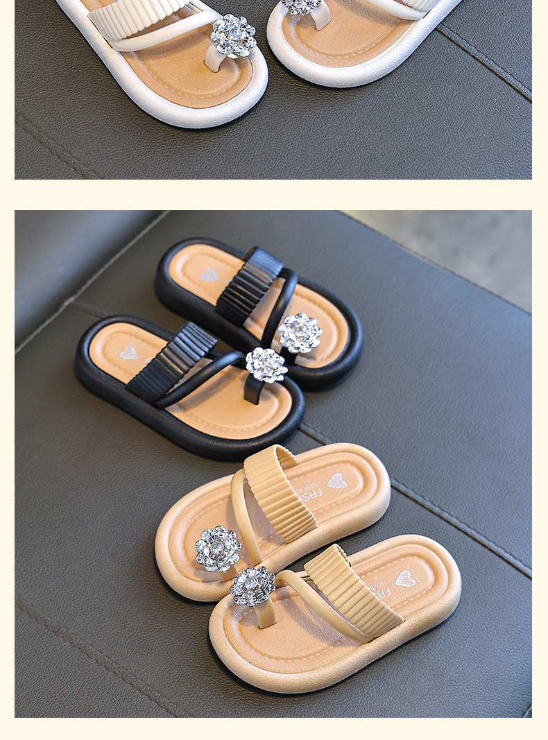 어린이 야외 부모-자식 다목적 슬리퍼 2025 여름 새로운 스타일 중대형 어린이 꽃 라인 석 플랫 슬리퍼