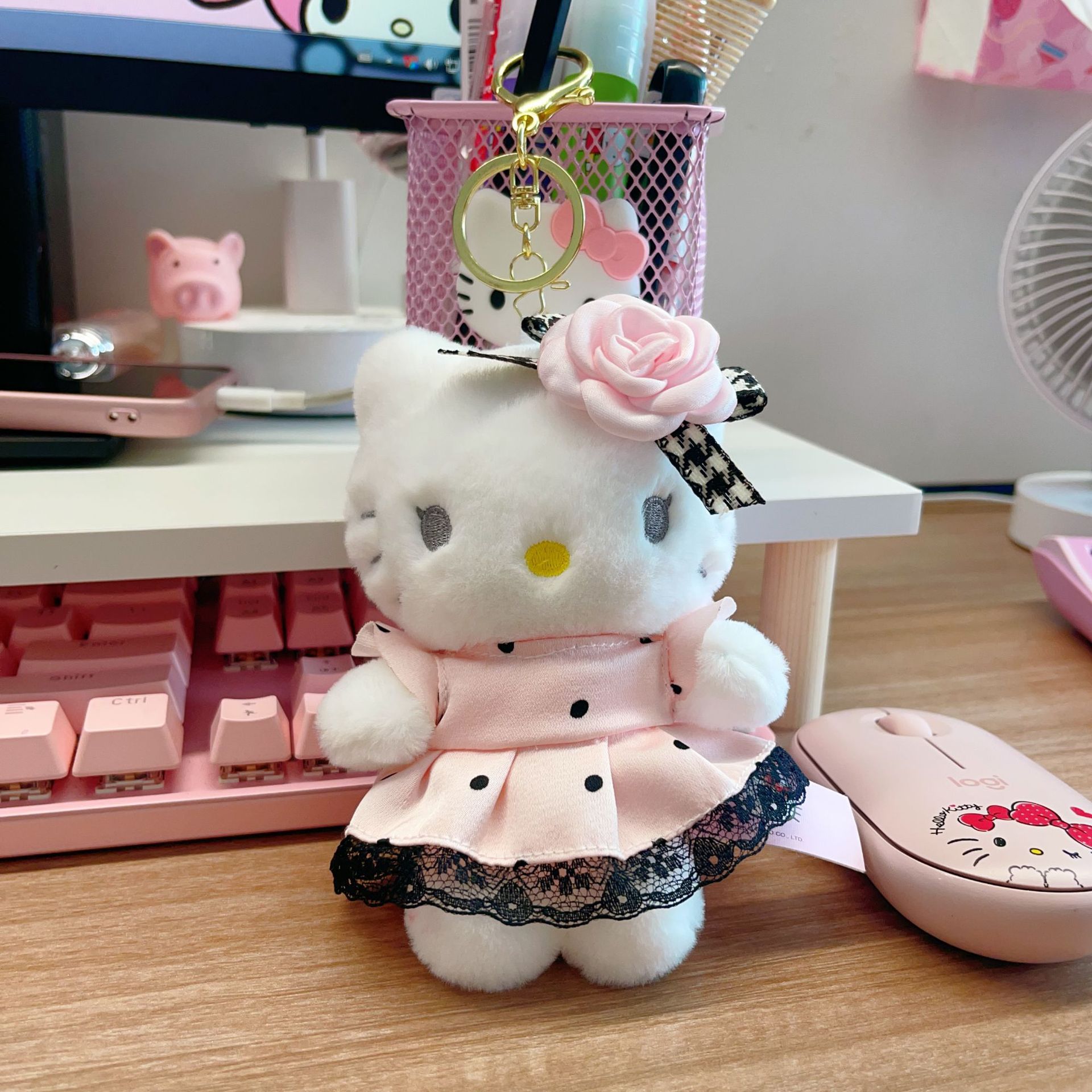 • 12cm 핑크 폴카 도트 키티 앉아 펜던트