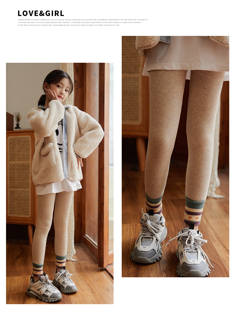 공장 도매 겨울 국경 새로운 소녀 수직 기모 바지 발 컬러 매칭 패딩 어린이 레깅스